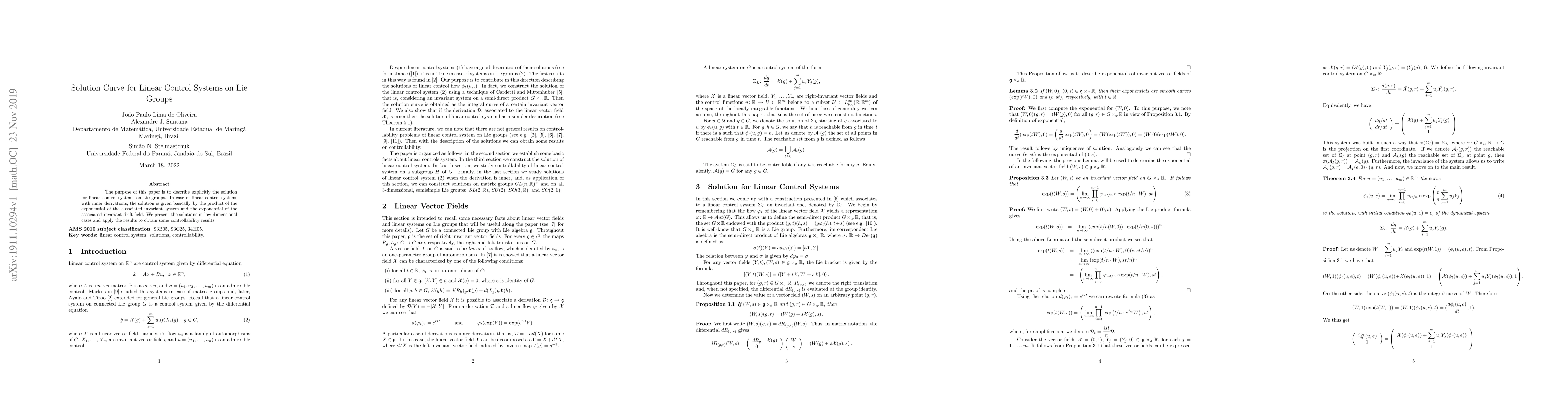 This paper explicitly derives solutions for linear control systems on Lie groups, showing that the solution involves the product of exponentials of invariant systems and drift fields. The findings are demonstrated in low dimensions and used to establish controllability results.