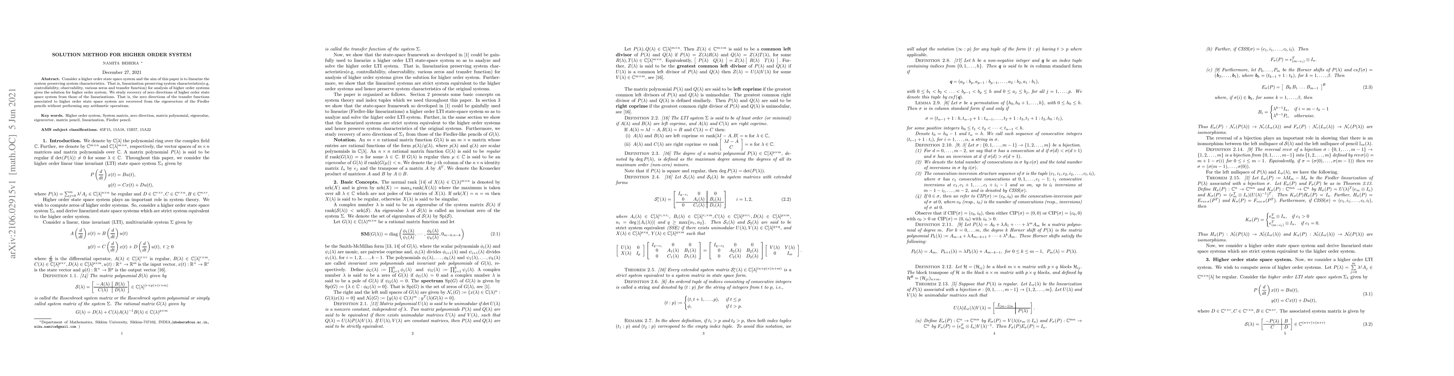 This paper proposes a method to linearize higher-order systems while preserving key characteristics, such as controllability and observability. It also recovers zero directions from linearizations without performing arithmetic operations.
