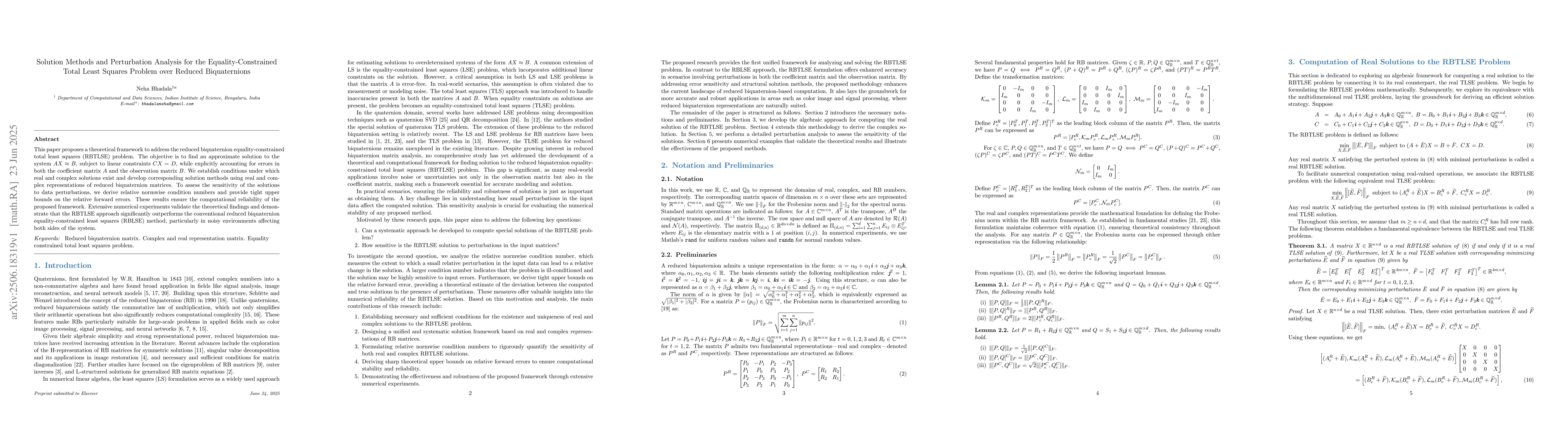 This paper proposes a theoretical framework to address the reduced biquaternion equality-constrained total least squares (RBTLSE) problem. The objective is to find an approximate solution to the system $AX \approx B$, subject to linear constraints $CX = D$, while explicitly accounting for errors in both the coefficient matrix $A$ and the observation matrix $B$. We establish conditions under which real and complex solutions exist and develop corresponding solution methods using real and complex representations of reduced biquaternion matrices. To assess the sensitivity of the solutions to data perturbations, we derive relative normwise condition numbers and provide tight upper bounds on the relative forward errors. These results ensure the computational reliability of the proposed framework. Extensive numerical experiments validate the theoretical findings and demonstrate that the RBTLSE approach significantly outperforms the conventional reduced biquaternion equality-constrained least squares (RBLSE) method, particularly in noisy environments affecting both sides of the system.