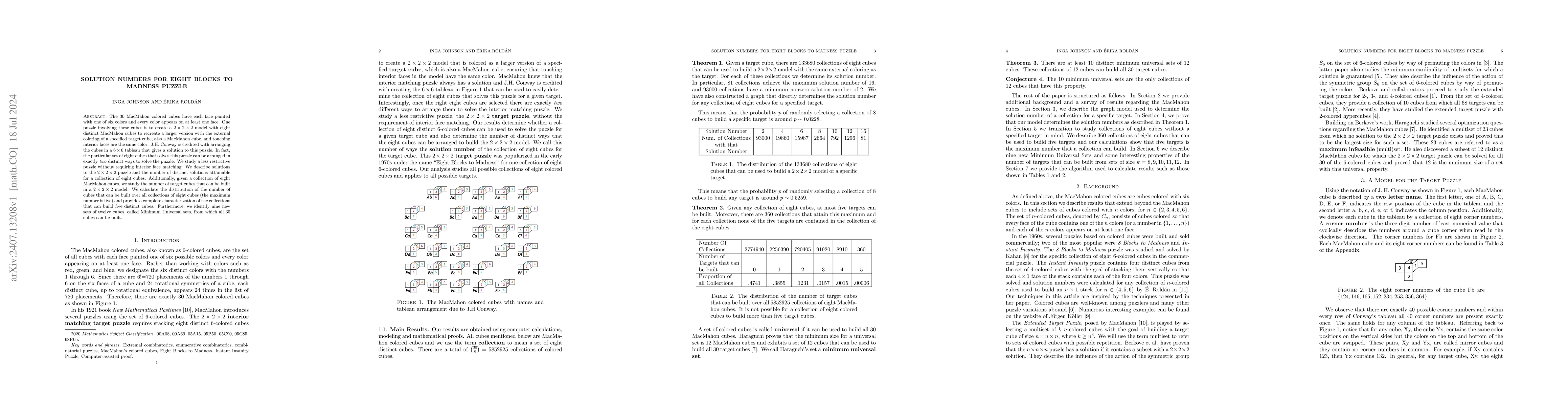 The 30 MacMahon colored cubes have each face painted with one of six colors and every color appears on at least one face. One puzzle involving these cubes is to create a $2\times2\times2$ model with eight distinct MacMahon cubes to recreate a larger version with the external coloring of a specified target cube, also a MacMahon cube, and touching interior faces are the same color. J.H. Conway is credited with arranging the cubes in a $6\times6$ tableau that gives a solution to this puzzle. In fact, the particular set of eight cubes that solves this puzzle can be arranged in exactly \textit{two} distinct ways to solve the puzzle. We study a less restrictive puzzle without requiring interior face matching. We describe solutions to the $2\times2\times2$ puzzle and the number of distinct solutions attainable for a collection of eight cubes. Additionally, given a collection of eight MacMahon cubes, we study the number of target cubes that can be built in a $2\times2\times2$ model. We calculate the distribution of the number of cubes that can be built over all collections of eight cubes (the maximum number is five) and provide a complete characterization of the collections that can build five distinct cubes. Furthermore, we identify nine new sets of twelve cubes, called Minimum Universal sets, from which all 30 cubes can be built.