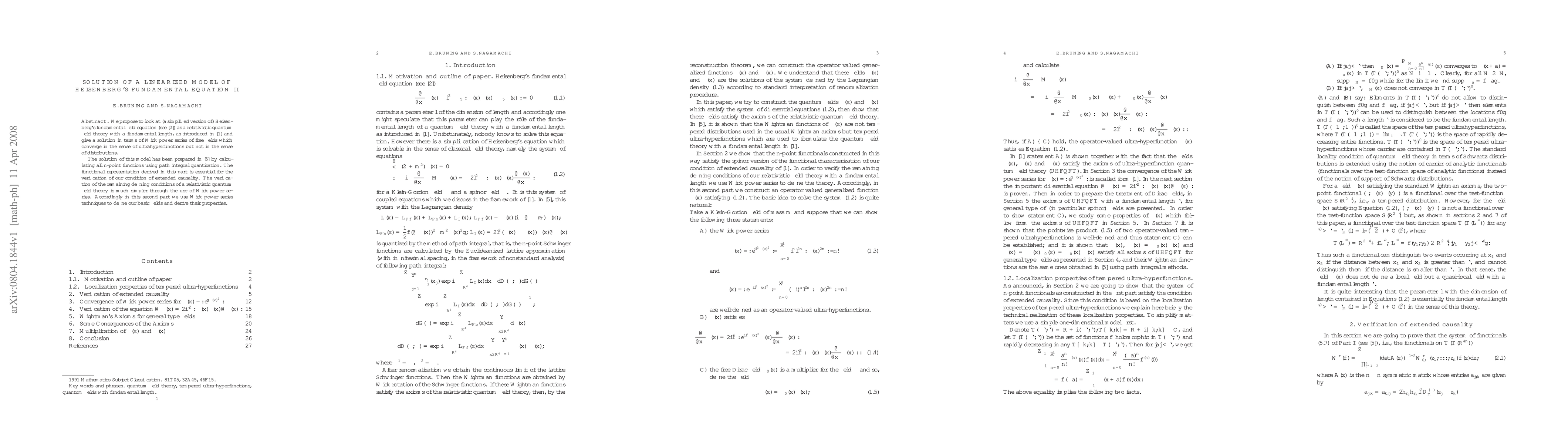 A linearized version of Heisenberg's fundamental equation is solved, and the solutions satisfy the axioms of a relativistic quantum field theory with a fundamental length.
