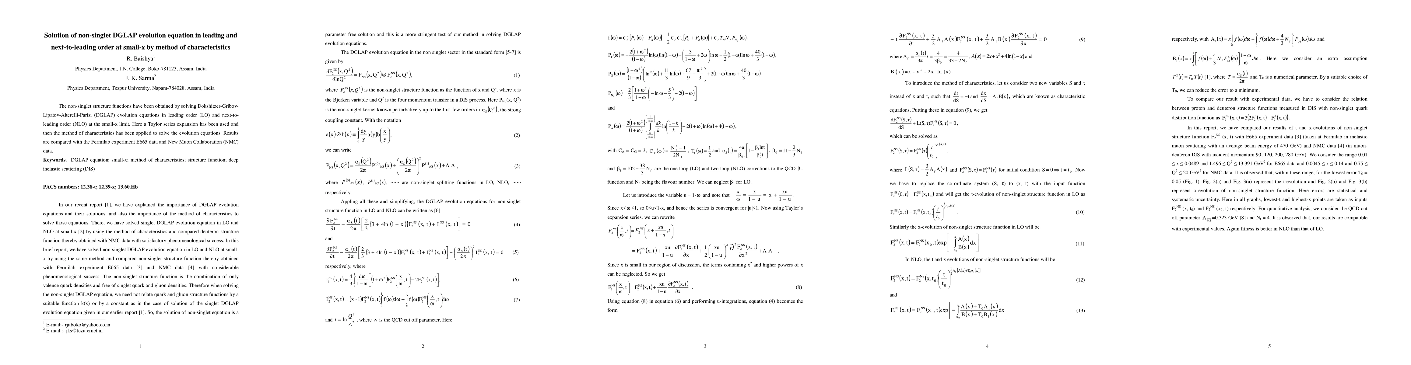 Researchers solved non-singlet DGLAP evolution equations at small-x using a combination of Taylor series expansion and the method of characteristics, obtaining results that compare favorably to experimental data from Fermilab and NMC experiments.