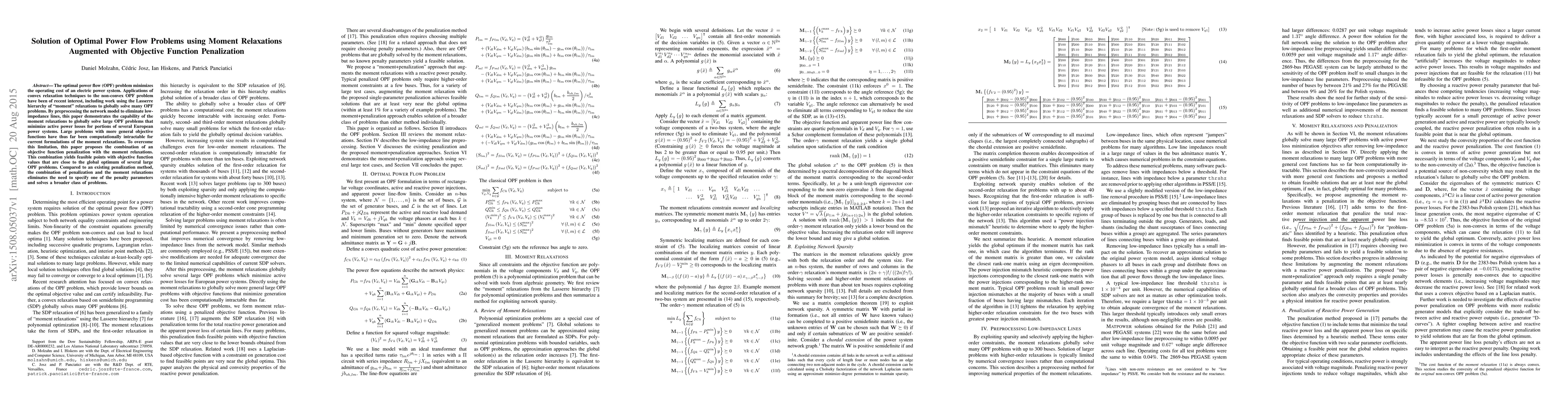 This paper proposes using moment relaxations augmented with objective function penalization to solve large-scale optimal power flow problems, demonstrating improved performance over existing methods by eliminating the need for specific penalty parameters and solving a broader range of problems.