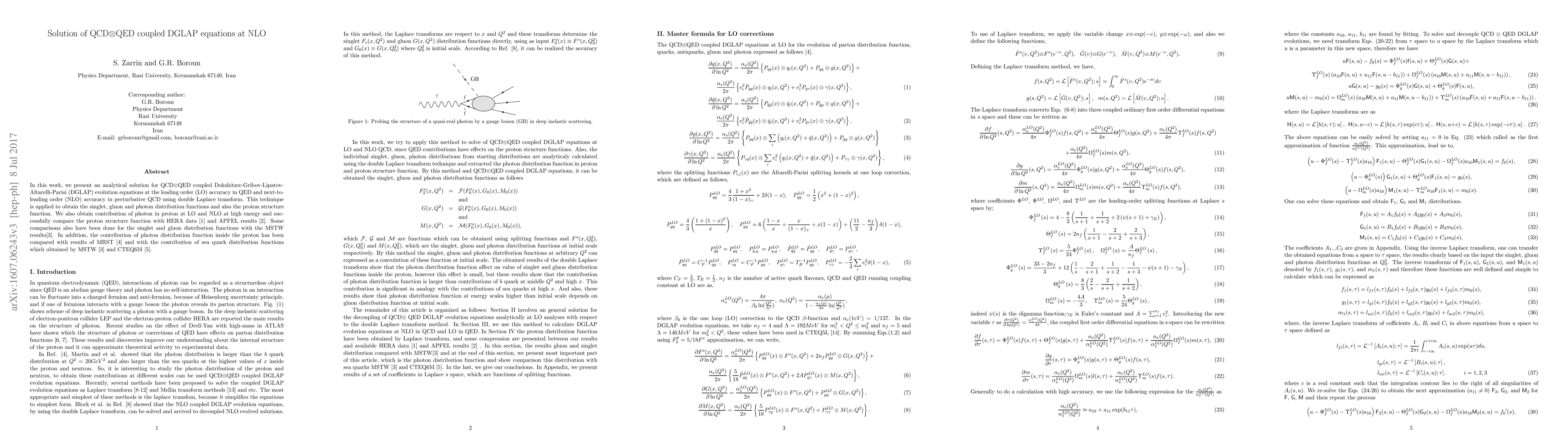 This paper presents an analytical solution for QCD$\otimes$QED coupled DGLAP equations at LO in QED and NLO in QCD using a double Laplace transform. The study provides singlet, gluon, and photon distribution functions, and compares results with experimental data and other theoretical predictions.