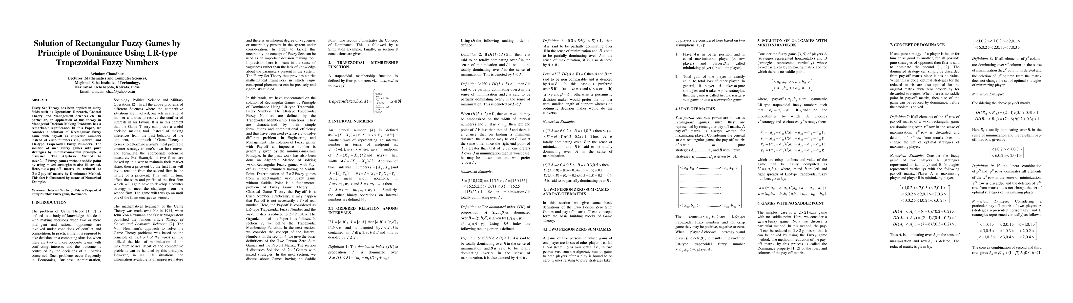 This paper solves Rectangular Fuzzy Games using LR-type Trapezoidal Fuzzy Numbers, applying dominance method to reduce the pay-off matrix, and demonstrates the minimax-maximin principle and mixed strategies for solving games.