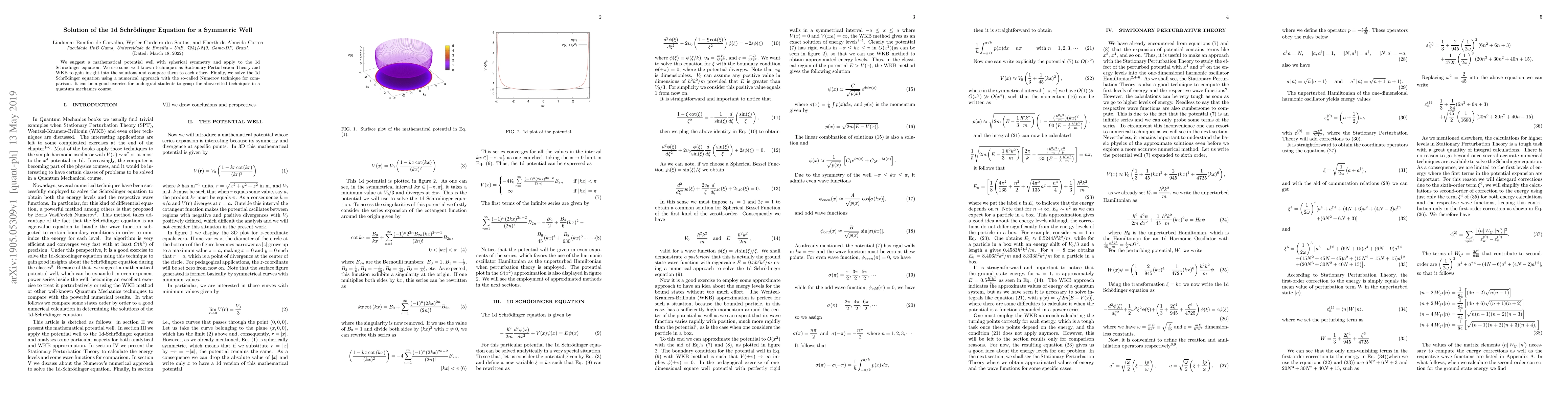 This paper presents a mathematical potential well with spherical symmetry and applies it to the 1d Schrödinger equation, utilizing Stationary Perturbation Theory, WKB, and the Numerov technique for solution comparison, aiming to enhance undergraduate understanding of quantum mechanics.