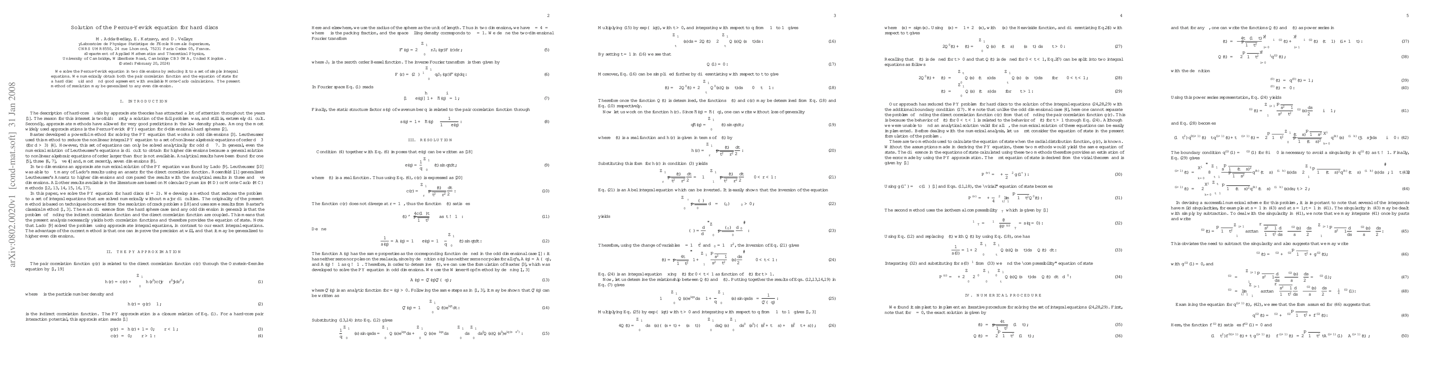 This paper solves the two-dimensional Percus-Yevick equation for hard disc fluids, deriving integral equations and obtaining the pair correlation function and equation of state, which align well with Monte-Carlo simulations. The method is extendable to higher even dimensions.