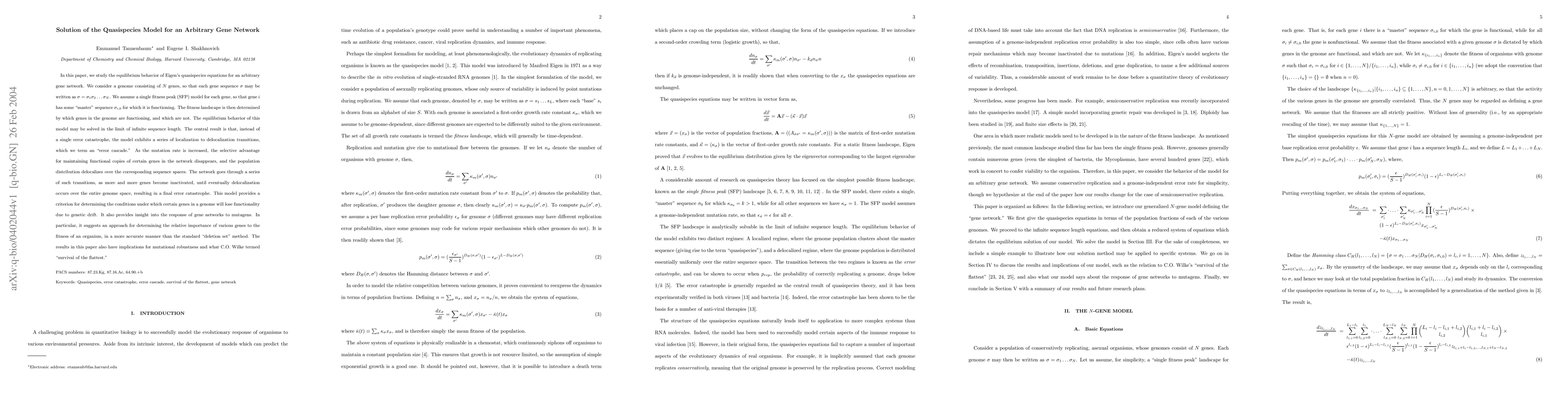 In this paper, we study the equilibrium behavior of Eigen's quasispecies equations for an arbitrary gene network. We consider a genome consisting of $ N $ genes, so that each gene sequence $ \sigma $ may be written as $ \sigma = \sigma_1 \sigma_2 ... \sigma_N $. We assume a single fitness peak (SFP) model for each gene, so that gene $ i $ has some ``master'' sequence $ \sigma_{i, 0} $ for which it is functioning. The fitness landscape is then determined by which genes in the genome are functioning, and which are not. The equilibrium behavior of this model may be solved in the limit of infinite sequence length. The central result is that, instead of a single error catastrophe, the model exhibits a series of localization to delocalization transitions, which we term an ``error cascade.'' As the mutation rate is increased, the selective advantage for maintaining functional copies of certain genes in the network disappears, and the population distribution delocalizes over the corresponding sequence spaces. The network goes through a series of such transitions, as more and more genes become inactivated, until eventually delocalization occurs over the entire genome space, resulting in a final error catastrophe. This model provides a criterion for determining the conditions under which certain genes in a genome will lose functionality due to genetic drift. It also provides insight into the response of gene networks to mutagens. In particular, it suggests an approach for determining the relative importance of various genes to the fitness of an organism, in a more accurate manner than the standard ``deletion set'' method. The results in this paper also have implications for mutational robustness and what C.O. Wilke termed ``survival of the flattest.''