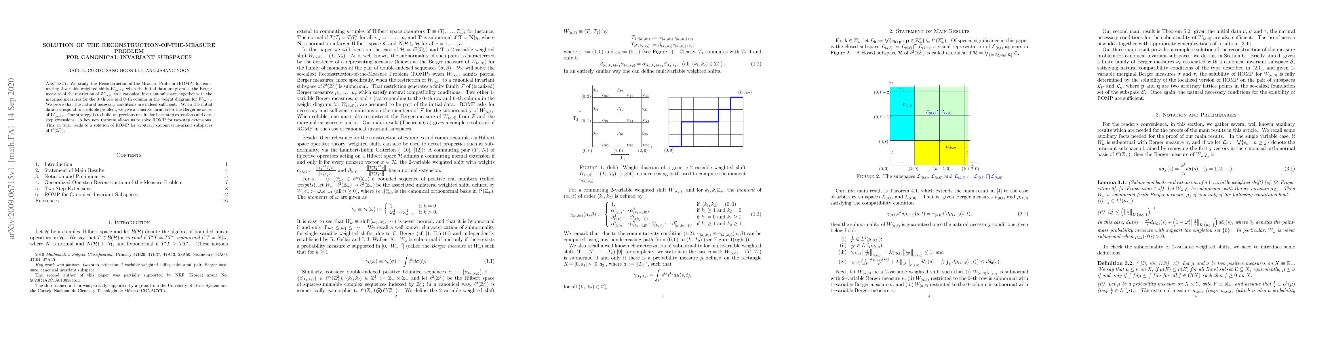 We study the Reconstruction-of-the-Measure Problem (ROMP) for commuting 2-variable weighted shifts $W_{(\alpha,\beta)}$, when the initial data are given as the Berger measure of the restriction of $W_{(\alpha,\beta)}$ to a canonical invariant subspace, together with the marginal measures for the 0-th row and 0-th column in the weight diagram for $W_{(\alpha,\beta)}$. We prove that the natural necessary conditions are indeed sufficient. When the initial data correspond to a soluble problem, we give a concrete formula for the Berger measure of $W_{(\alpha,\beta)}$. Our strategy is to build on previous results for back-step extensions and one-step extensions. A key new theorem allows us to solve ROMP for two-step extensions. This, in turn, leads to a solution of ROMP for arbitrary canonical invariant subspaces of $\ell^2(\mathbb{Z}_+^2)$.