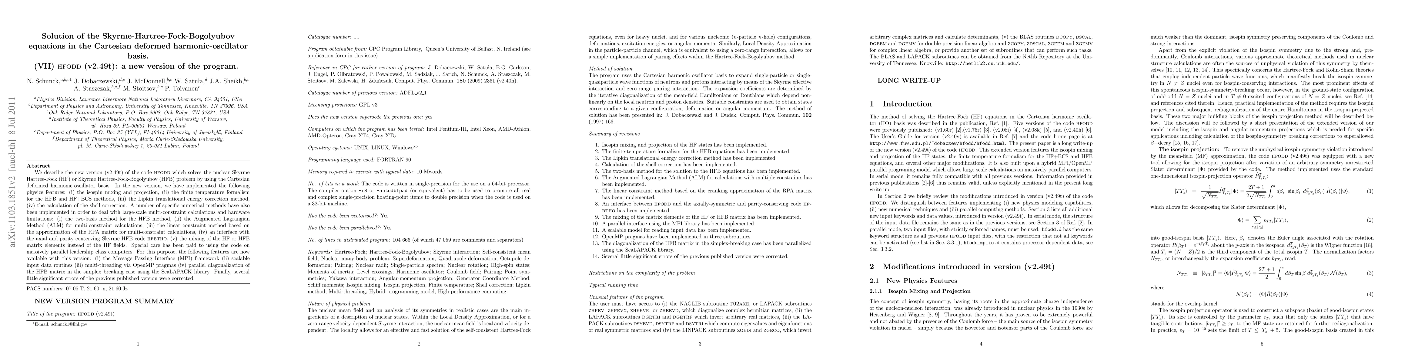 This paper introduces version v2.49t of the HFODD code, which solves nuclear Skyrme Hartree-Fock or Skyrme Hartree-Fock-Bogolyubov problems using the Cartesian deformed harmonic-oscillator basis, featuring enhanced physics and numerical methods for large-scale calculations, including isospin mixing, finite temperature formalism, and parallel computing capabilities.