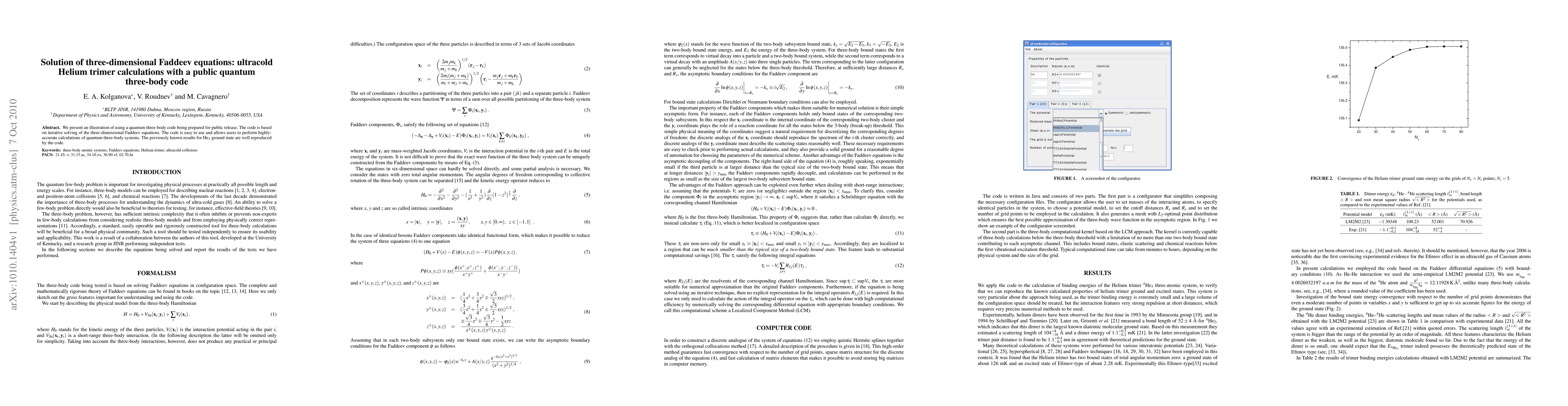This paper introduces a new quantum three-body code for solving three-dimensional Faddeev equations, demonstrating its accuracy with ultracold Helium trimer calculations. The code, soon to be publicly available, effectively reproduces known results for the He$_3$ ground state.