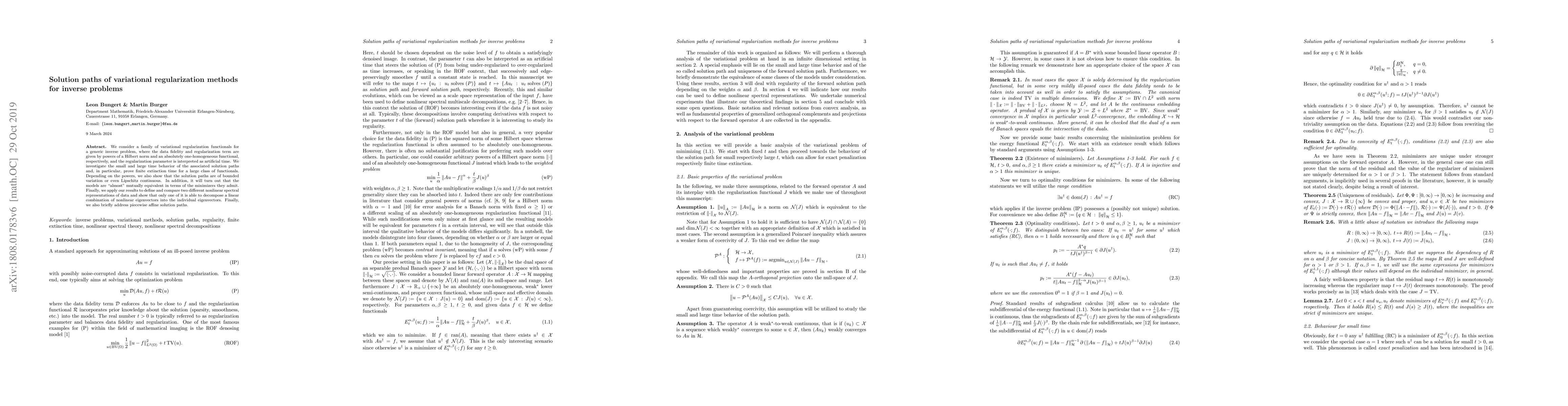This paper investigates the solution paths of variational regularization methods for inverse problems, proving finite extinction time and analyzing the continuity properties of these paths. It also explores the equivalence of different regularization models and applies the findings to compare two non-linear spectral representations.