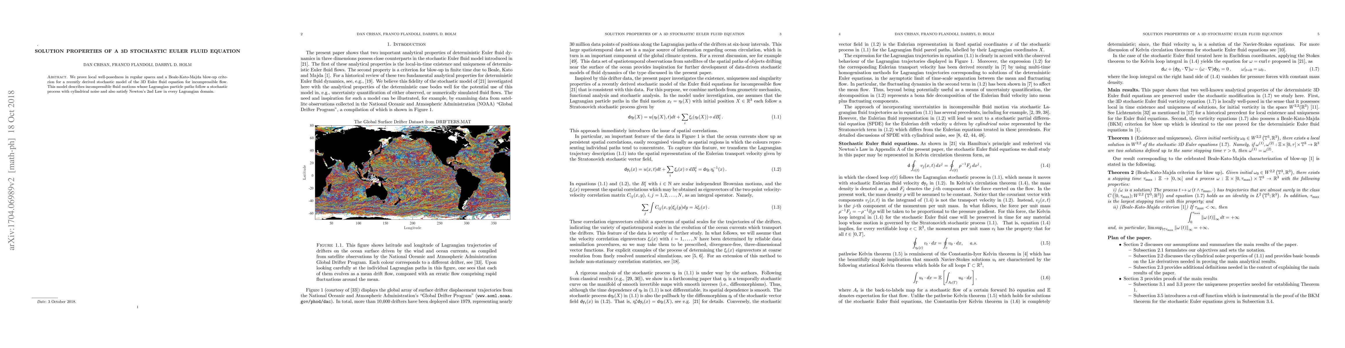 This paper establishes local well-posedness and a blow-up criterion for a stochastic 3D Euler fluid equation, demonstrating that solutions exist under certain conditions and identifying when they may cease to exist due to singularities. The model incorporates stochastic processes and cylindrical noise in the Lagrangian particle paths.