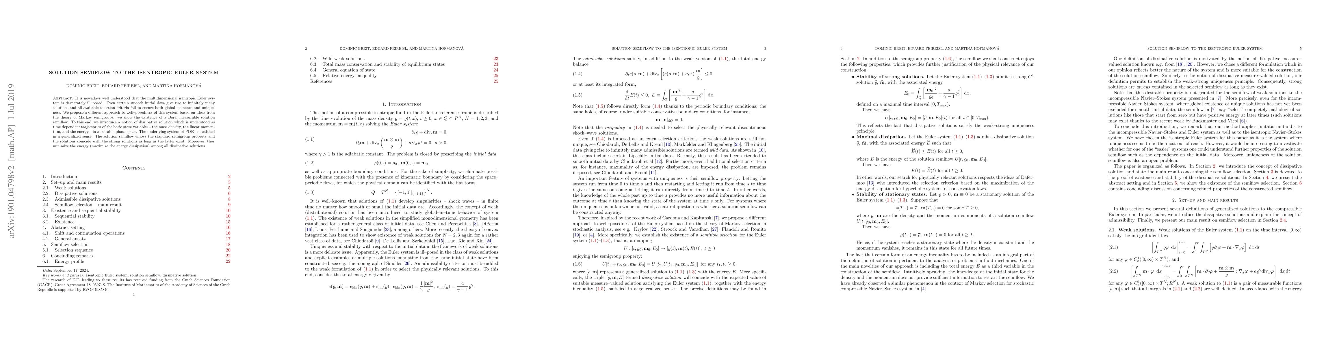 This paper addresses the ill-posedness of the multidimensional isentropic Euler system by proposing a solution semiflow approach based on Markov semigroup theory. It introduces a dissipative solution concept and demonstrates the existence of a Borel measurable solution semiflow that minimizes energy among all such solutions.