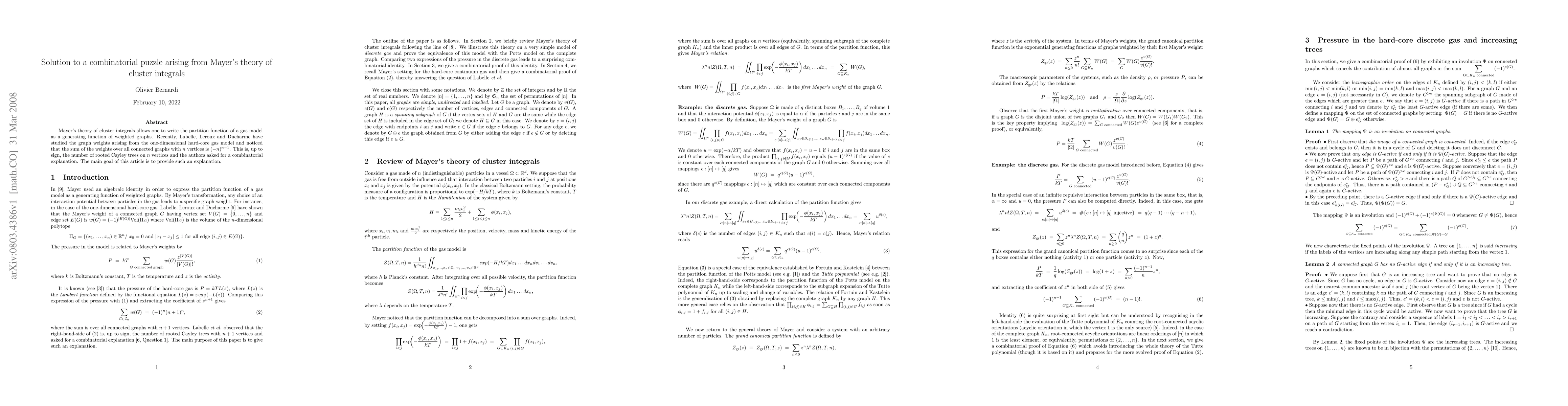 Researchers solve a puzzle related to Mayer's theory of cluster integrals, finding that the sum of weights in a specific graph model is equal to the number of rooted Cayley trees with a certain structure.