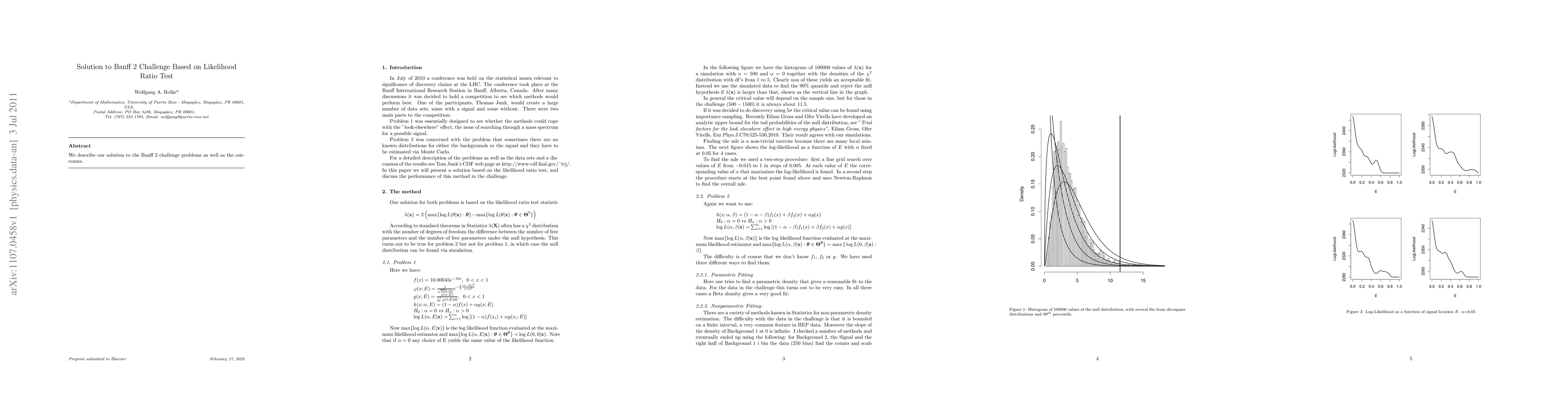 We describe our solution to the Banff 2 challenge problems as well as the outcomes.
