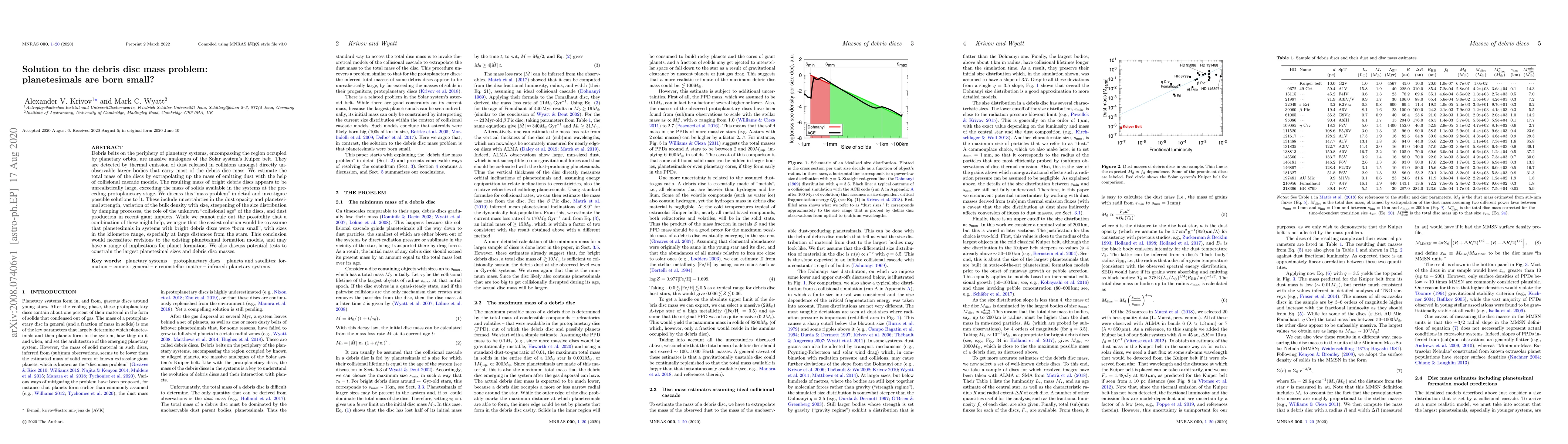 This paper addresses the "mass problem" in debris discs, where the estimated mass from dust collisions exceeds available solid material. The authors propose that planetesimals in these discs may have formed small, in the kilometre range, to resolve the discrepancy, suggesting a need for revisions in planetesimal formation models.