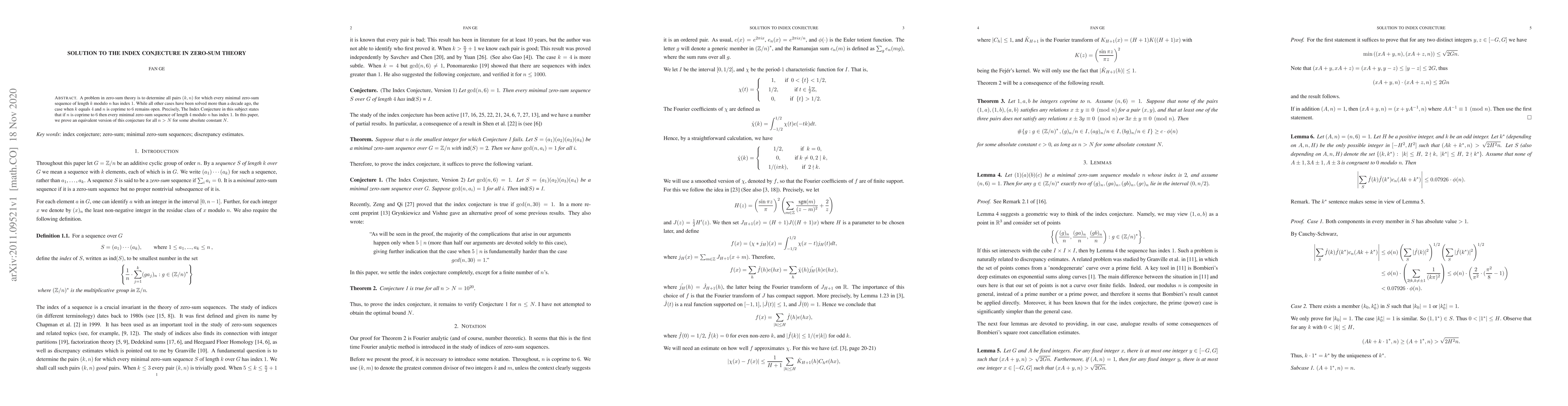 A problem in zero-sum theory is to determine all pairs $(k,n)$ for which every minimal zero-sum sequence of length $k$ modulo $n$ has index $1$. While all other cases have been solved more than a decade ago, the case when $k$ equals $4$ and $n$ is coprime to $6$ remains open. Precisely, The Index Conjecture in this subject states that if $n$ is coprime to $6$ then every minimal zero-sum sequence of length $4$ modulo $n$ has index $1$. In this paper, we prove an equivalent version of this conjecture for all $n>N$ for some absolute constant $N$.