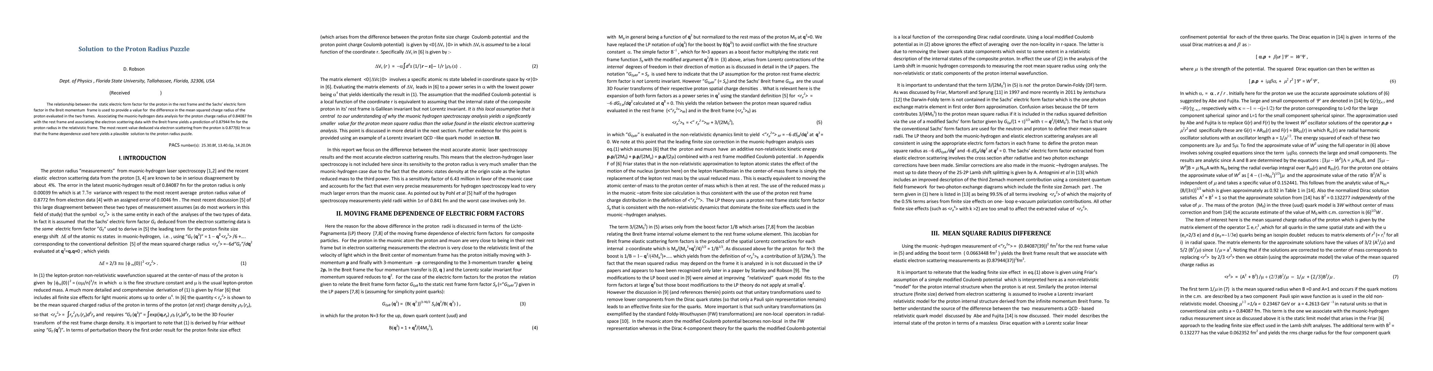 The paper presents a detailed analysis using the Licht-Pagnamenta theory to explain the discrepancy between proton radius measurements from muonic hydrogen spectroscopy and electron scattering, proposing a solution based on frame dependence.