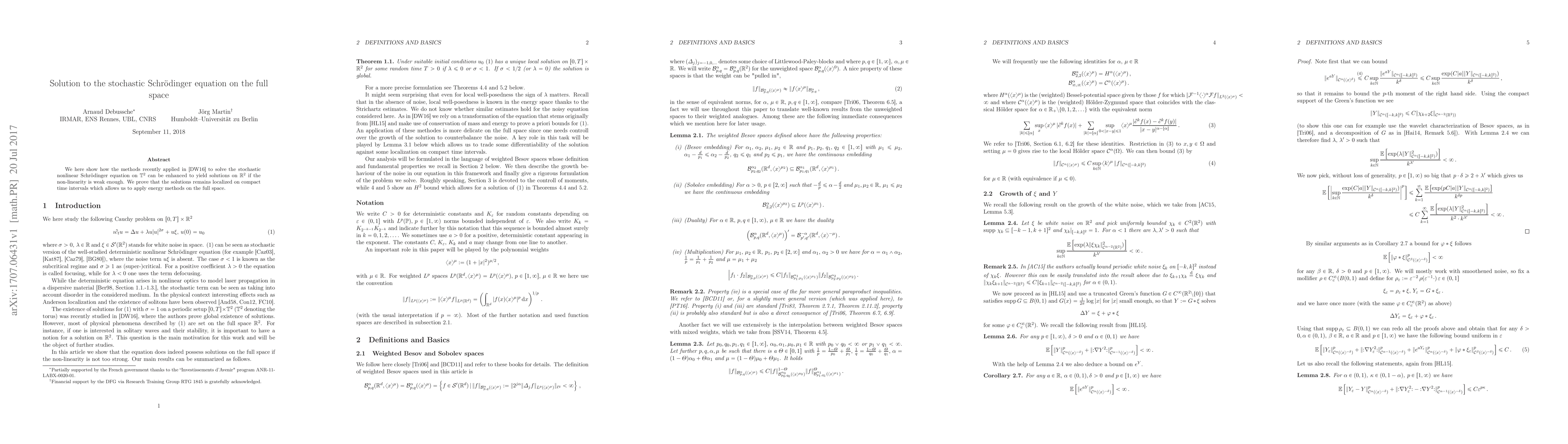 We here show how the methods recently applied by [DW16] to solve the stochastic nonlinear Schr\"odinger equation on $\mathbb{T}^2$ can be enhanced to yield solutions on $\mathbb{R}^2$ if the non-linearity is weak enough. We prove that the solutions remains localized on compact time intervals which allows us to apply energy methods on the full space.