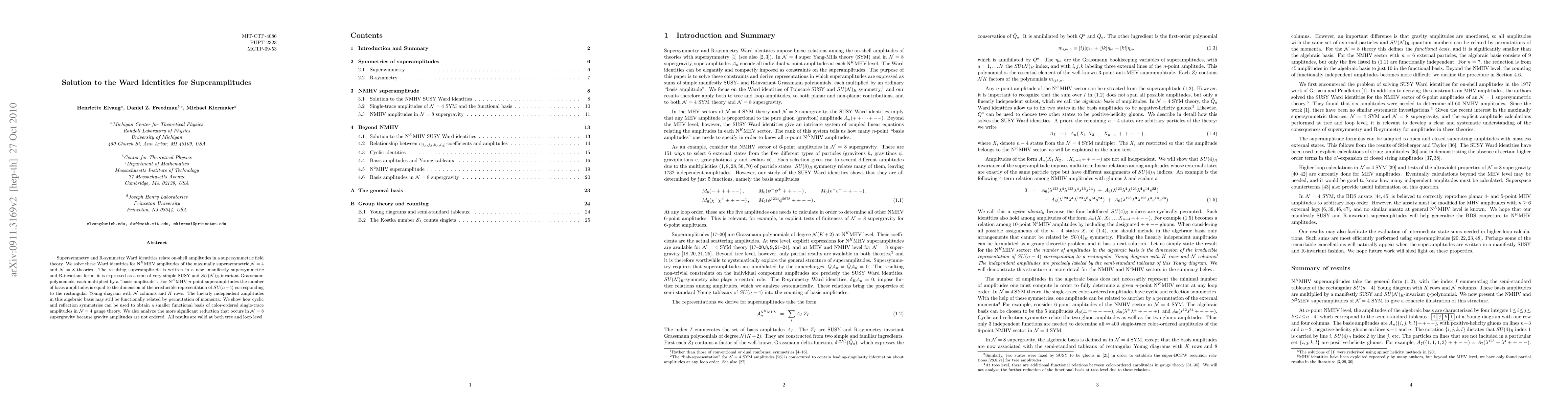 This research solves the Ward identities for (Next-to)^K MHV superamplitudes in N=4 and N=8 supersymmetric theories, expressing the superamplitudes in a new manifestly supersymmetric and R-invariant form. The findings reveal a reduced functional basis of color-ordered single-trace amplitudes through symmetries, valid at both tree and loop levels.
