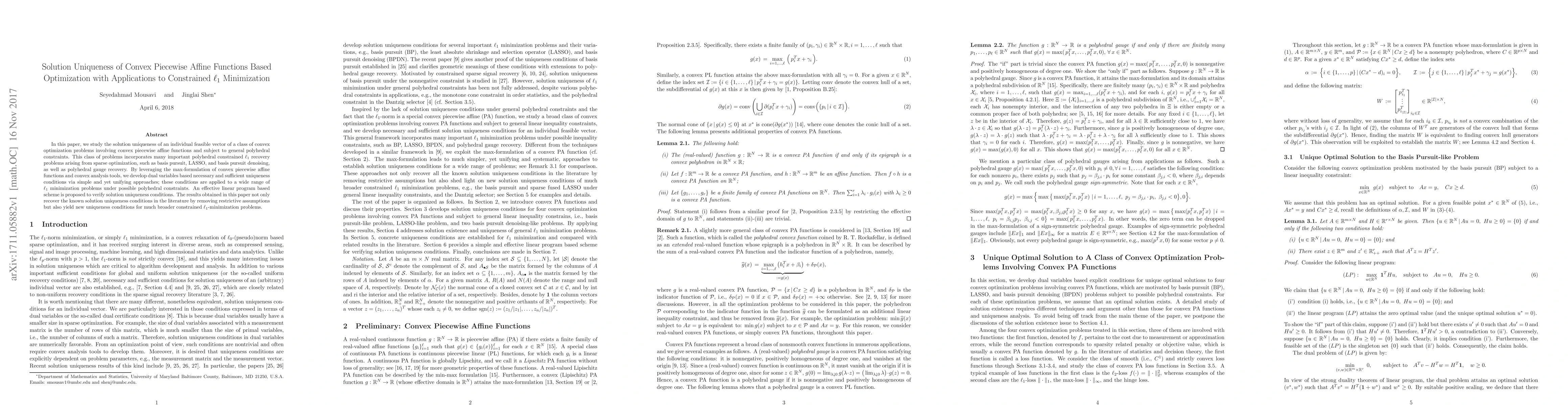 This paper explores the uniqueness of solutions for convex optimization problems involving convex piecewise affine functions under polyhedral constraints, extending to $\ell_1$ minimization problems like LASSO and basis pursuit. It develops new necessary and sufficient uniqueness conditions using dual variables and convex analysis.