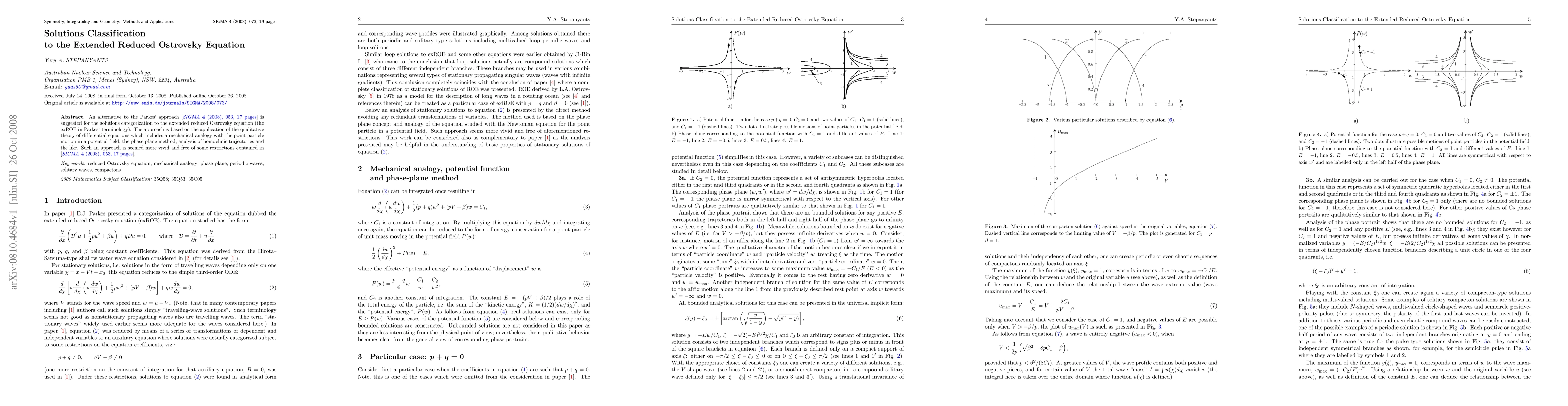 An alternative to the Parkes' approach [SIGMA 4 (2008) 053, arXiv:0806.3155] is suggested for the solutions categorization to the extended reduced Ostrovsky equation (the exROE in Parkes' terminology). The approach is based on the application of the qualitative theory of differential equations which includes a mechanical analogy with the point particle motion in a potential field, the phase plane method, analysis of homoclinic trajectories and the like. Such an approach is seemed more vivid and free of some restrictions contained in the above mentioned Parkes' paper.