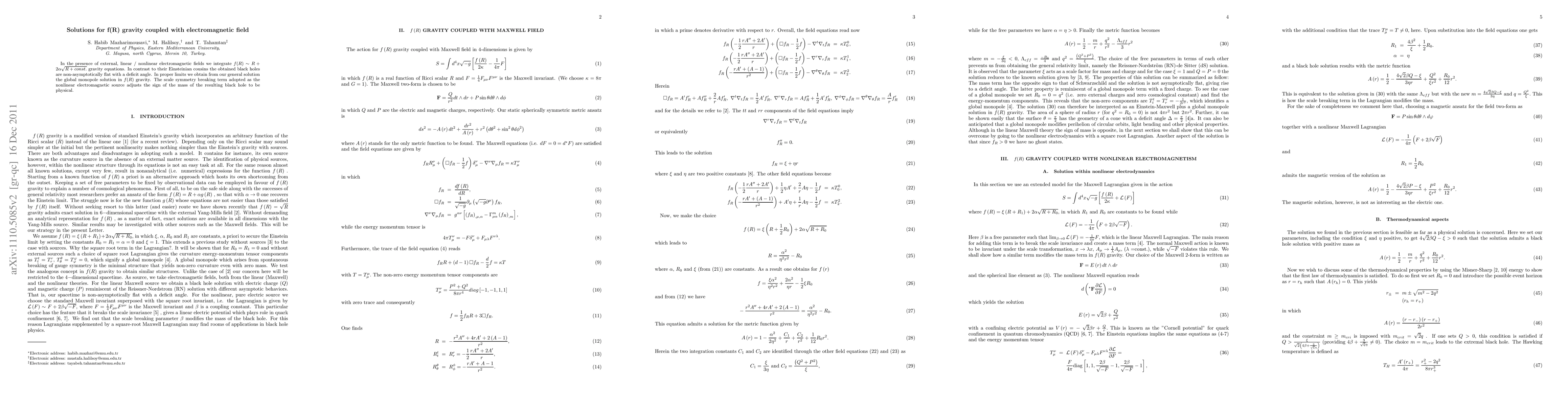 Researchers in f(R) gravity coupled with electromagnetic fields find non-asymptotically flat black holes with deficit angles, and a global monopole solution that adjusts the sign of the mass to be physical.