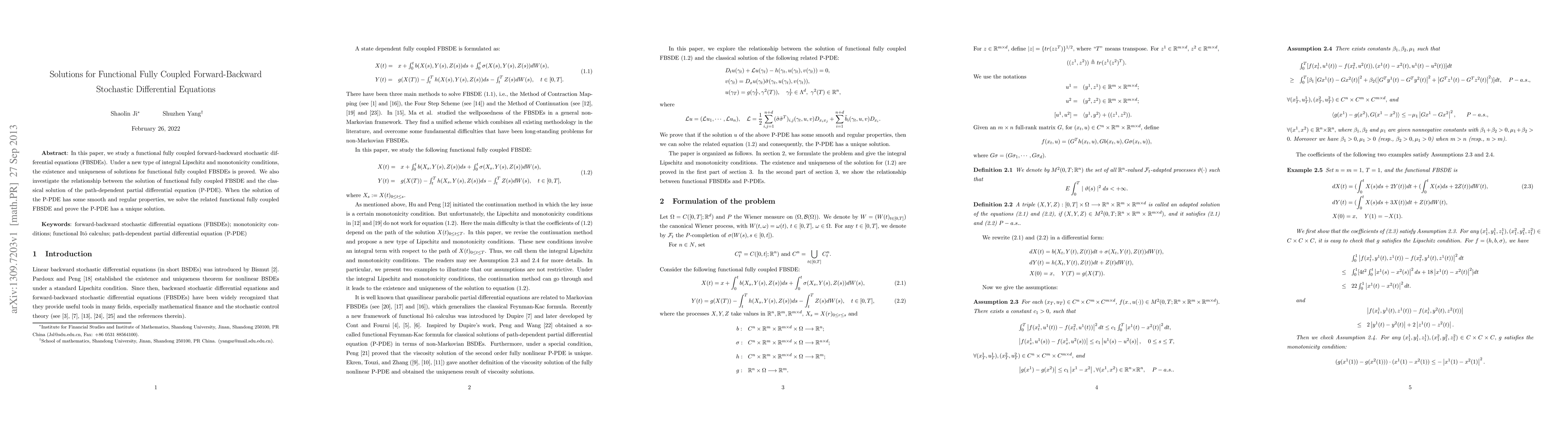 This paper establishes the existence and uniqueness of solutions for functional fully coupled forward-backward stochastic differential equations (FBSDEs) under new integral conditions. It also explores the connection between these solutions and the classical solution of a path-dependent partial differential equation (P-PDE), proving the P-PDE has a unique solution under certain smoothness conditions.