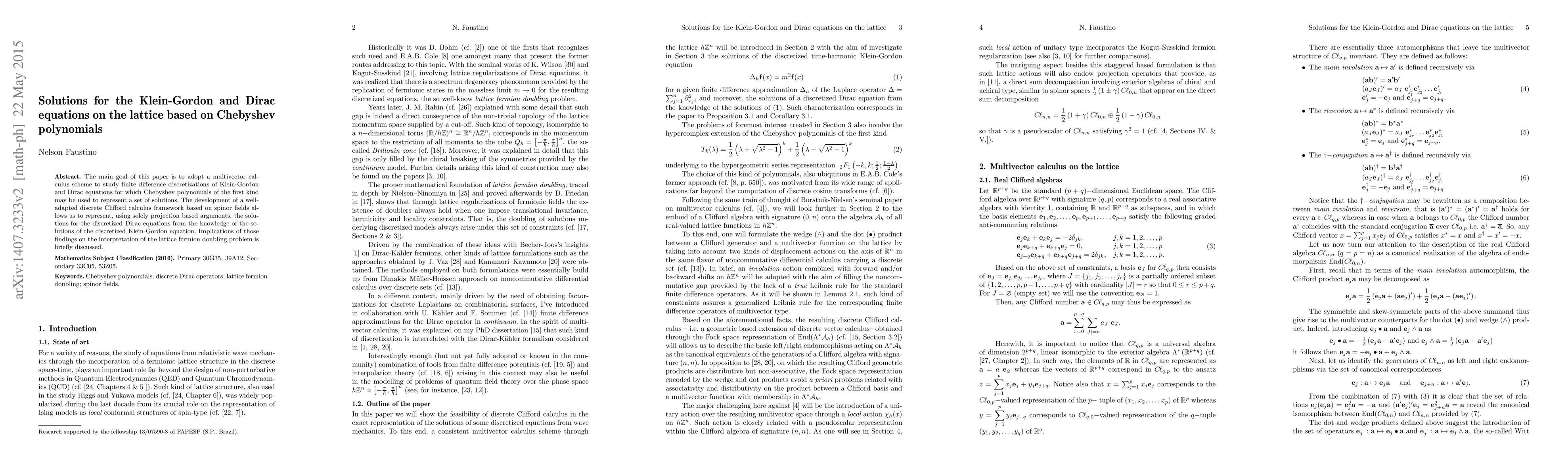 This paper explores finite difference discretizations of the Klein-Gordon and Dirac equations using Chebyshev polynomials and a discrete Clifford calculus framework, revealing how solutions to the discretized Dirac equations can be derived from those of the Klein-Gordon equation, with implications for understanding the lattice fermion doubling problem.