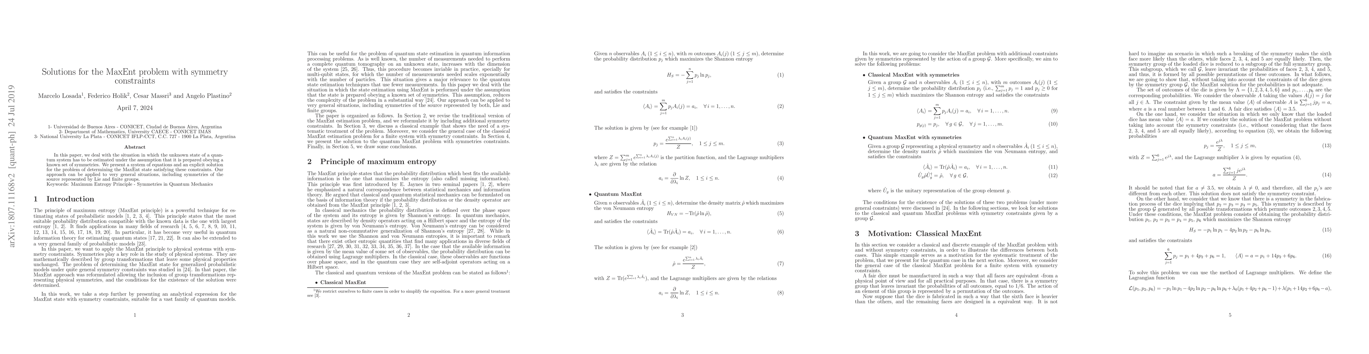 This paper offers a system of equations and an explicit solution for finding the MaxEnt state of a quantum system that adheres to symmetry constraints, presenting a significant advancement in quantum mechanics problem-solving.