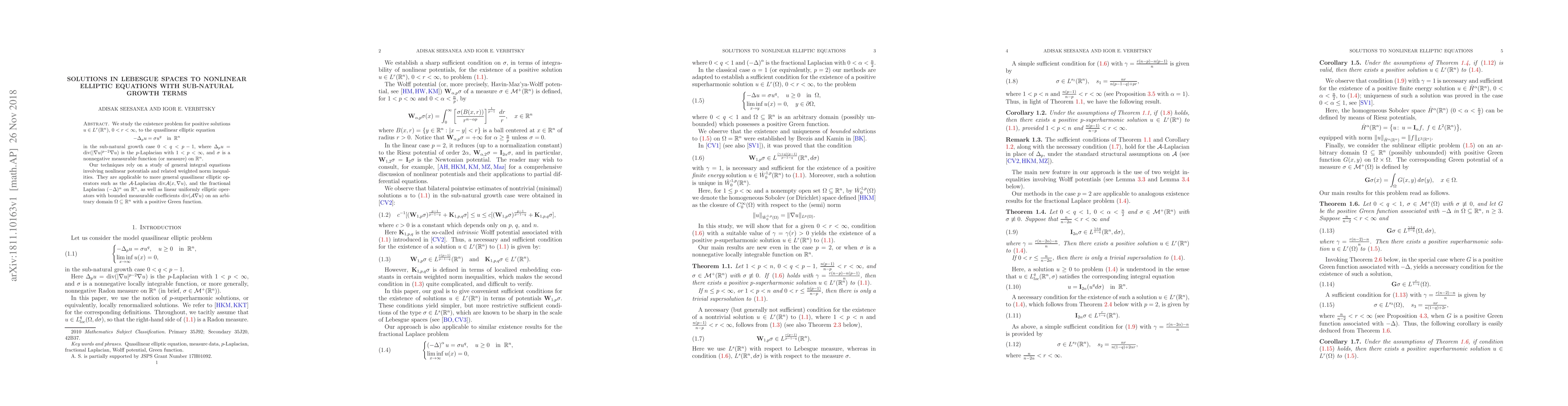This paper investigates the existence of positive solutions in Lebesgue spaces for quasilinear elliptic equations with sub-natural growth terms, specifically focusing on the equation $-\Delta_{p} u = \sigma u^{q}$ in $\mathbb{R}^n$ for $0 < q < p-1$. The study employs techniques involving integral equations and weighted norm inequalities to address a broad range of elliptic operators.