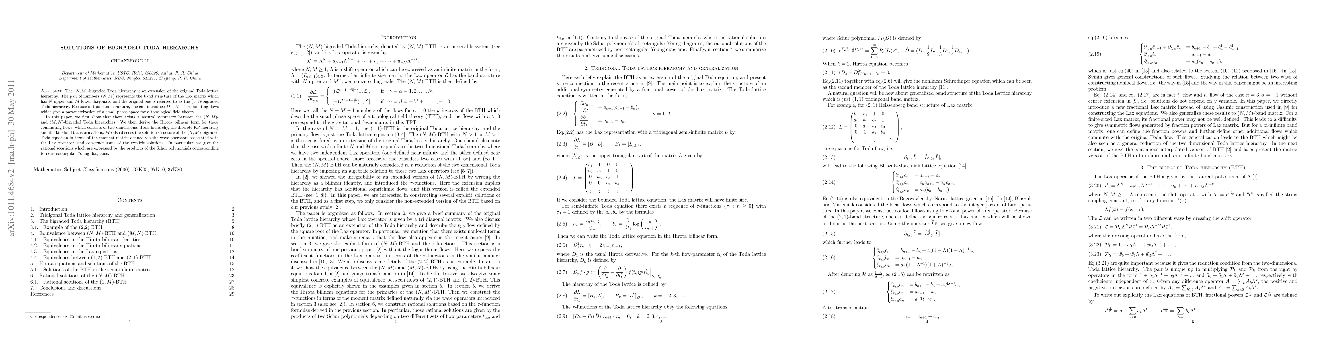 The $(N,M)$-bigraded Toda hierarchy is an extension of the original Toda lattice hierarchy. The pair of numbers $(N,M)$ represents the band structure of the Lax matrix which has $N$ upper and $M$ lower diagonals, and the original one is referred to as the $(1,1)$-bigraded Toda hierarchy. Because of this band structure, one can introduce $M+N-1$ commuting flows which give a parametrization of a small phase space for a topological field theory. In this paper, we first show that there exists a natural symmetry between the $(N,M)$- and $(M,N)$-bigraded Toda hierarchies. We then derive the Hirota bilinear form for those commuting flows, which consists of two-dimensional Toda hierarchy, the discrete KP hierarchy and its B\"acklund transformations. We also discuss the solution structure of the $(N,M)$-bigraded Toda equation in terms of the moment matrix defined via the wave operators associated with the Lax operator, and construct some of the explicit solutions. In particular, we give the rational solutions which are expressed by the products of the Schur polynomials corresponding to non-rectangular Young diagrams.