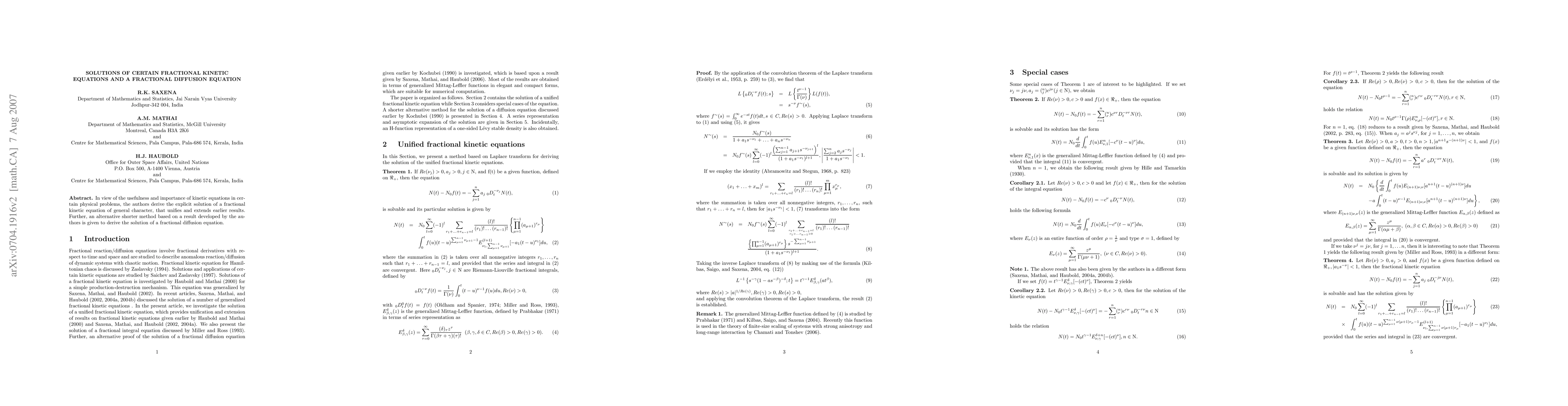 This paper derives explicit solutions for a generalized fractional kinetic equation and a fractional diffusion equation, unifying previous results and introducing a more efficient method for the latter. The authors' approach extends earlier work and provides a novel solution technique.