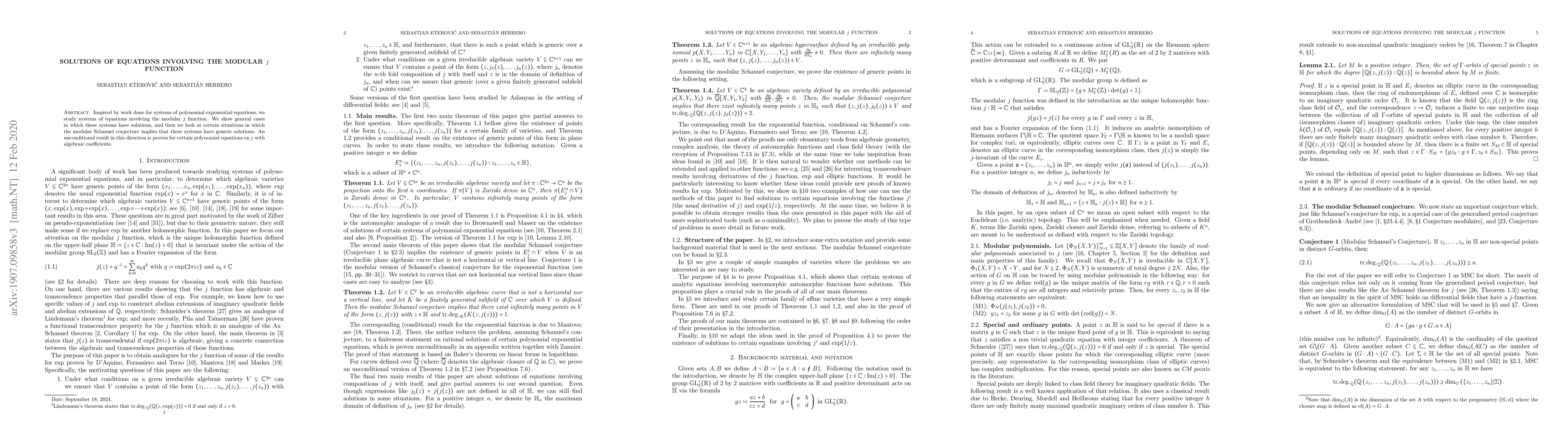 Inspired by work done for systems of polynomial exponential equations, we study systems of equations involving the modular $j$ function. We show general cases in which these systems have solutions, and then we look at certain situations in which the modular Schanuel conjecture implies that these systems have generic solutions. An unconditional result in this direction is proven for certain polynomial equations on $j$ with algebraic coefficients.