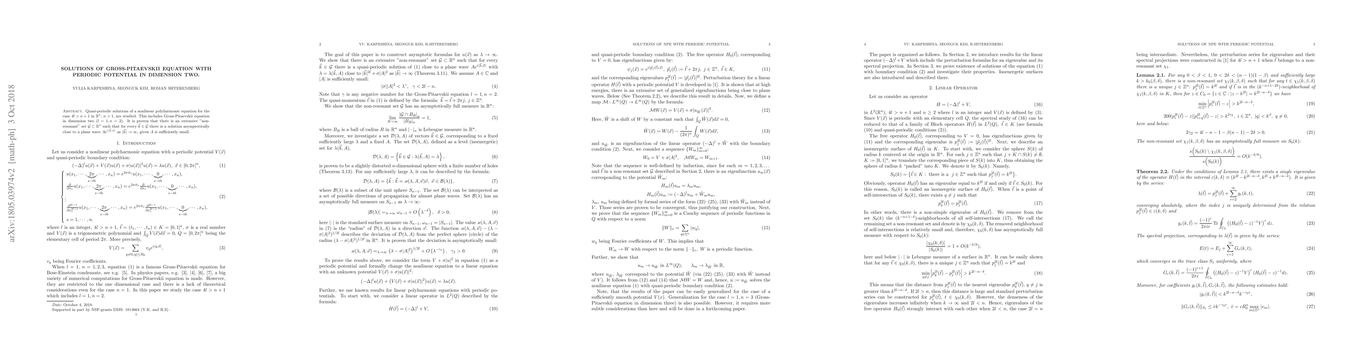 Quasi-periodic solutions of a nonlinear polyharmonic equation for the case $4l>n+1$ in $\R^n$, $n>1$, are studied. This includes Gross-Pitaevskii equation in dimension two ($l=1,n=2$). It is proven that there is an extensive "non-resonant" set ${\mathcal G}\subset \R^n$ such that for every $\vec k\in \mathcal G$ there is a solution asymptotically close to a plane wave $Ae^{i\langle{ \vec{k}, \vec{x} }\rangle}$ as $|\vec k|\to \infty $, given $A$ is sufficiently small.
