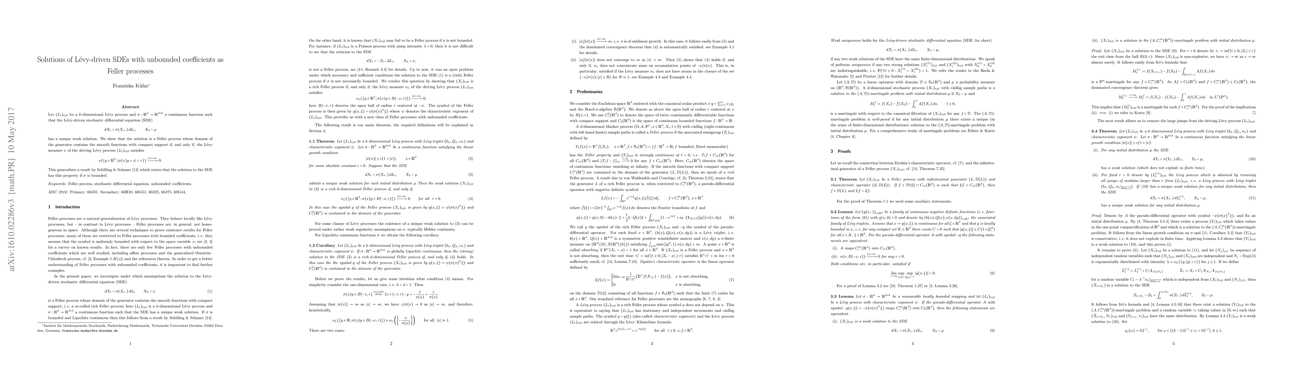 A research paper shows that solutions to L Levy-driven SDEs with unbounded coefficients are Feller processes if the driving L Levy process has a specific property regarding its measure, ensuring the solution's generator domain includes smooth functions with compact support.