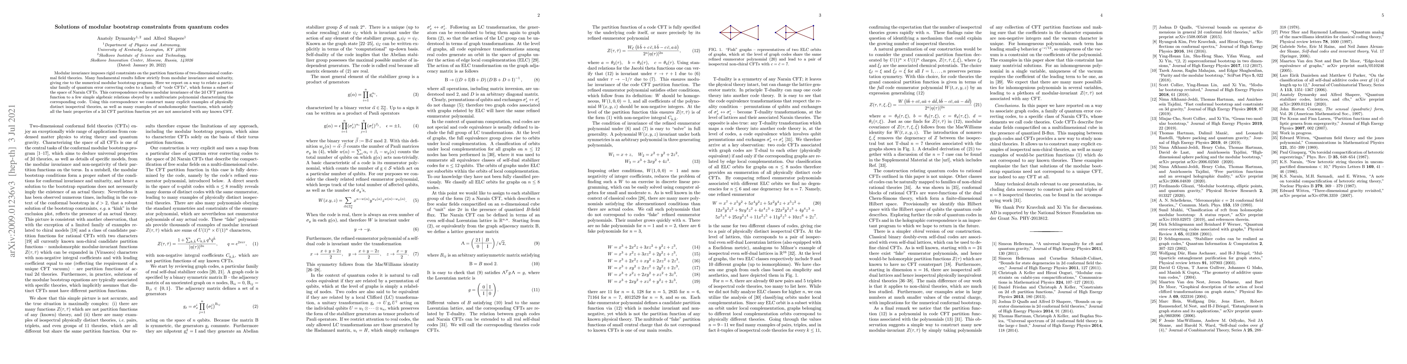 Modular invariance imposes rigid constrains on the partition functions of two-dimensional conformal field theories. Many fundamental results follow strictly from modular invariance, giving rise to the numerical modular bootstrap program. Here we report a way to assign to a particular family of quantum error correcting codes a family of "code CFTs" CFTs", which forms a subset of the space of Narain CFTs. This correspondence reduces modular invariance of the 2d CFT partition function to a few simple algebraic relations obeyed by a multivariate polynomial characterizing the corresponding code. Using this relation we construct many explicit examples of physically distinct isospectral theories, as well as many examples of nonholomorphic functions, which satisfy all basic properties of the 2d CFT partition function, yet are not associated with any known CFT.
