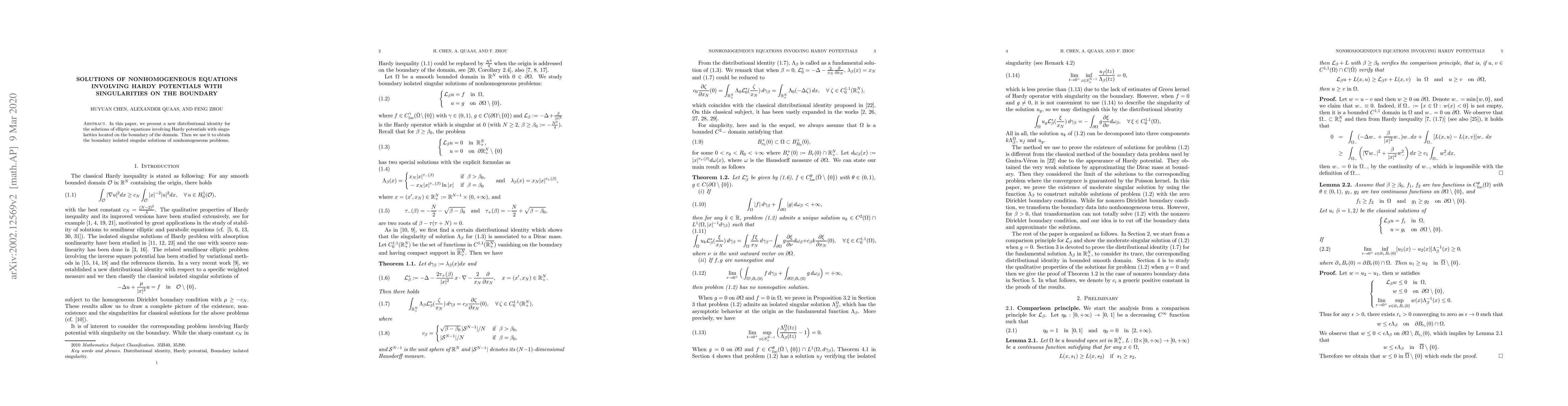 Summary: This paper introduces a novel distributional identity for elliptic equations with Hardy potentials having boundary singularities, and utilizes it to derive boundary isolated singular solutions for nonhomogeneous problems.