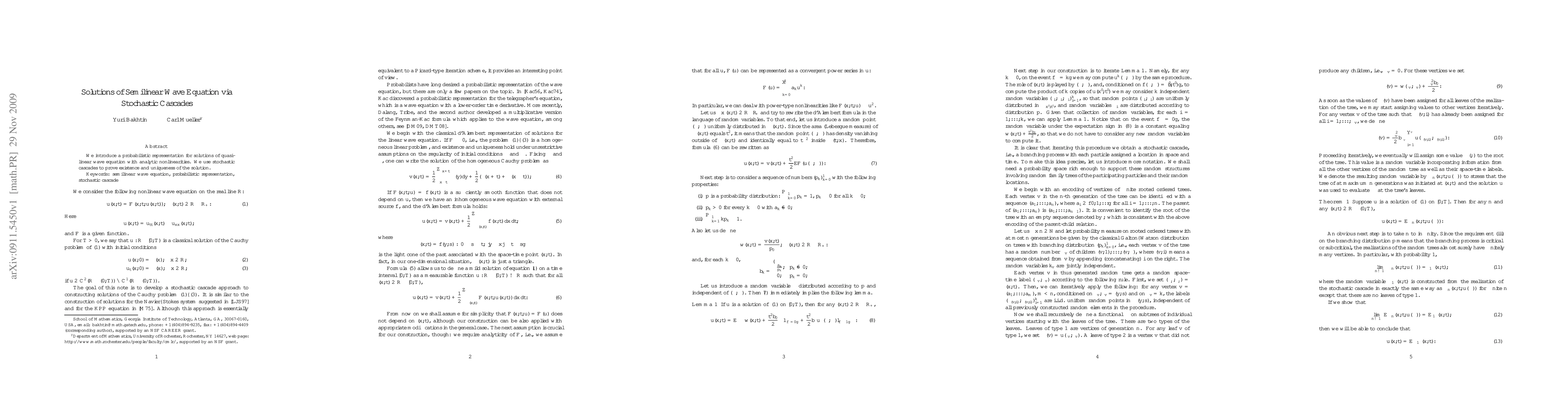 This paper presents a probabilistic method for solving the quasilinear wave equation with analytic nonlinearities, utilizing stochastic cascades to establish the existence and uniqueness of solutions.