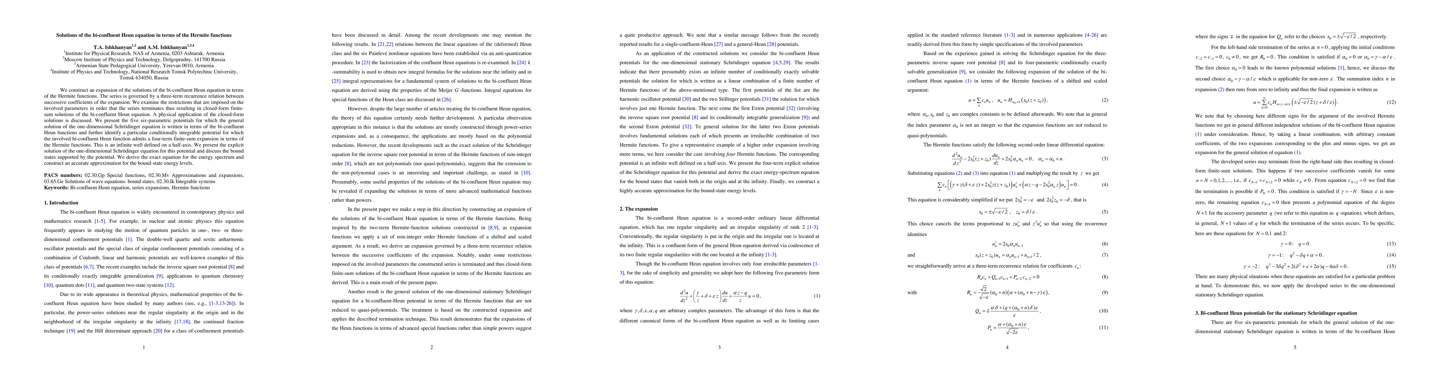 This paper constructs solutions of the bi-confluent Heun equation using Hermite functions, deriving a three-term recurrence relation for the expansion coefficients. It identifies conditions under which the series terminates, yielding finite-sum solutions, and explores their application in solving the one-dimensional Schrödinger equation for specific potentials.