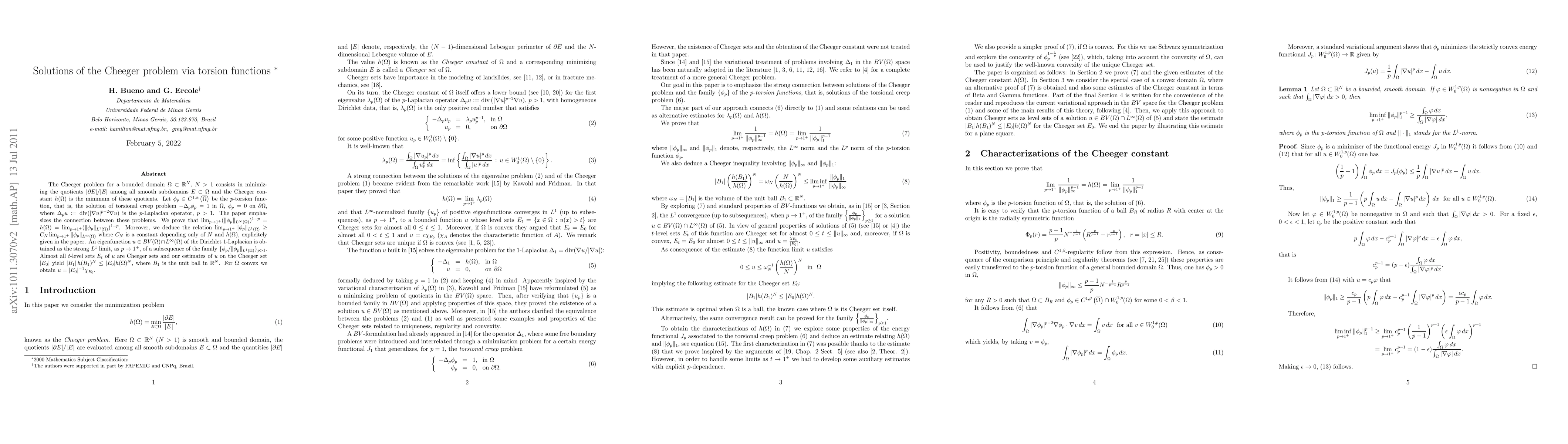 Researchers solve the Cheeger problem using a new approach involving torsion functions, showing that certain solutions converge to an eigenfunction of the Dirichlet 1-Laplacian operator.