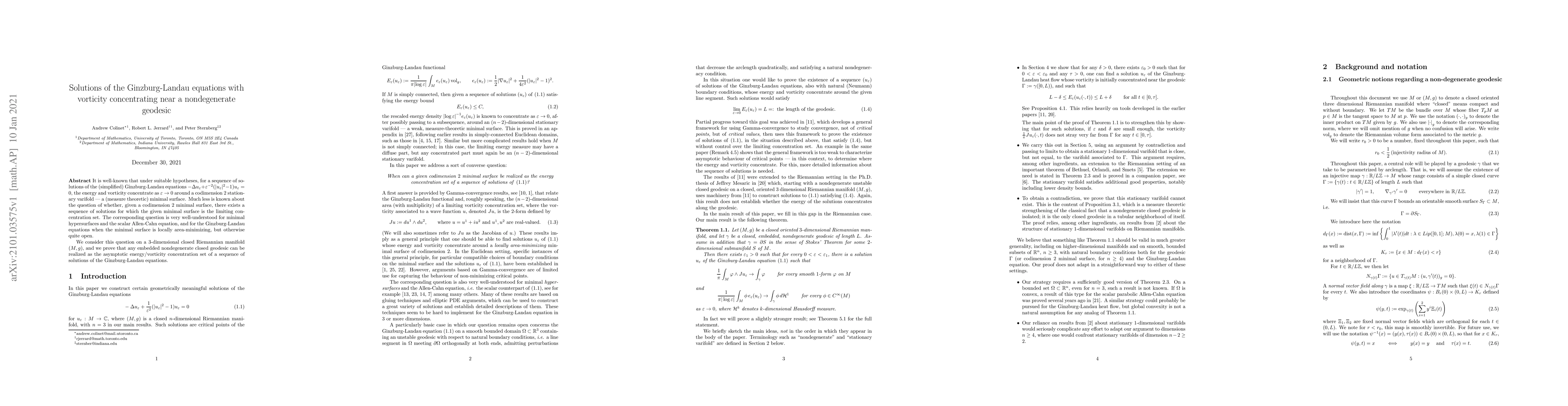 This paper explores the concentration of energy and vorticity in solutions of the Ginzburg-Landau equations near nondegenerate geodesics on a closed Riemannian manifold, proving that any embedded nondegenerate closed geodesic can serve as the limiting concentration set for such solutions.