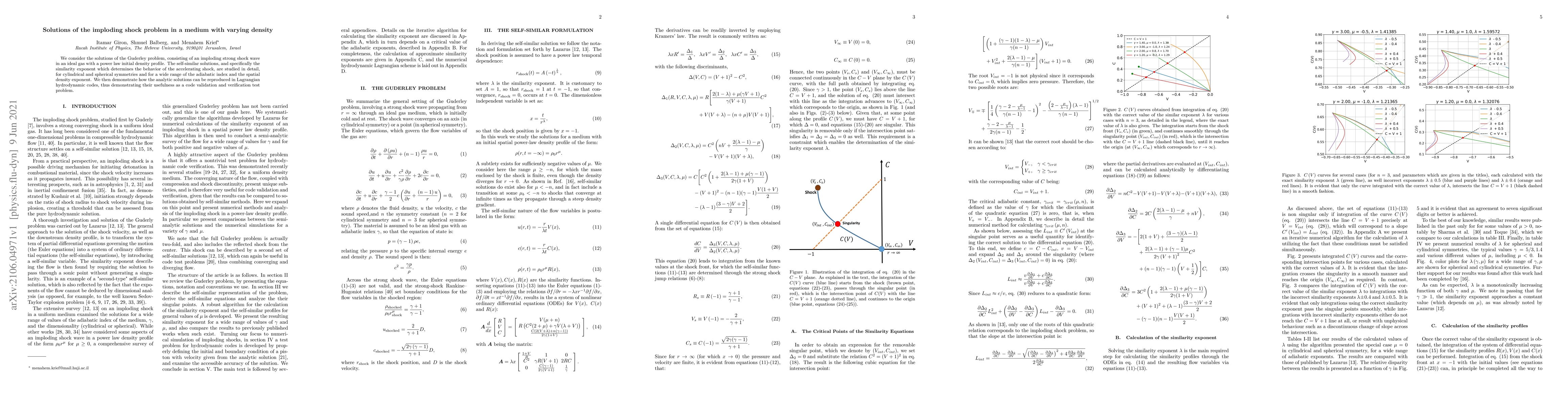 This paper explores self-similar solutions for the imploding shock wave problem in an ideal gas with a power law density profile, analyzing cylindrical and spherical symmetries. It also validates these analytic solutions in Lagrangian hydrodynamic codes, serving as a test for code verification.