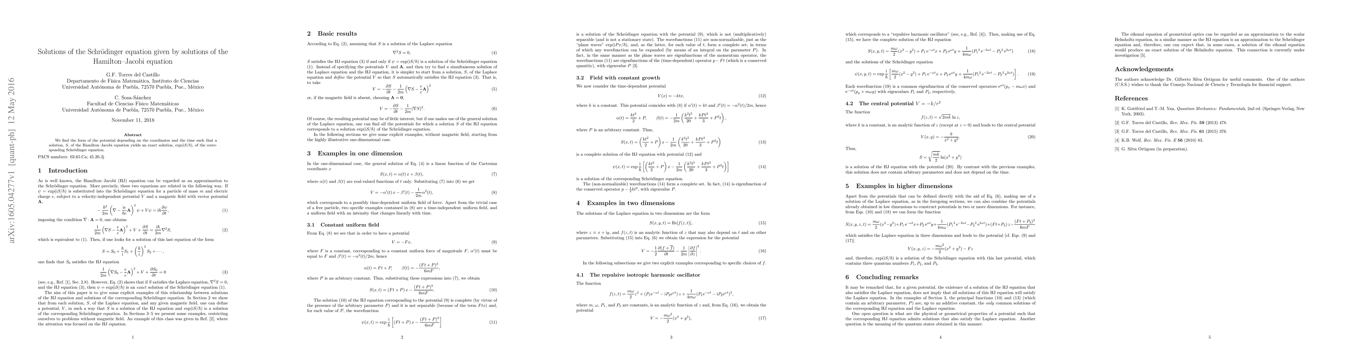 We find the form of the potential depending on the coordinates and the time such that a solution, $S$, of the Hamilton--Jacobi equation yields an exact solution, $\exp ({\rm i} S/\hbar)$, of the corresponding Schr\"odinger equation.