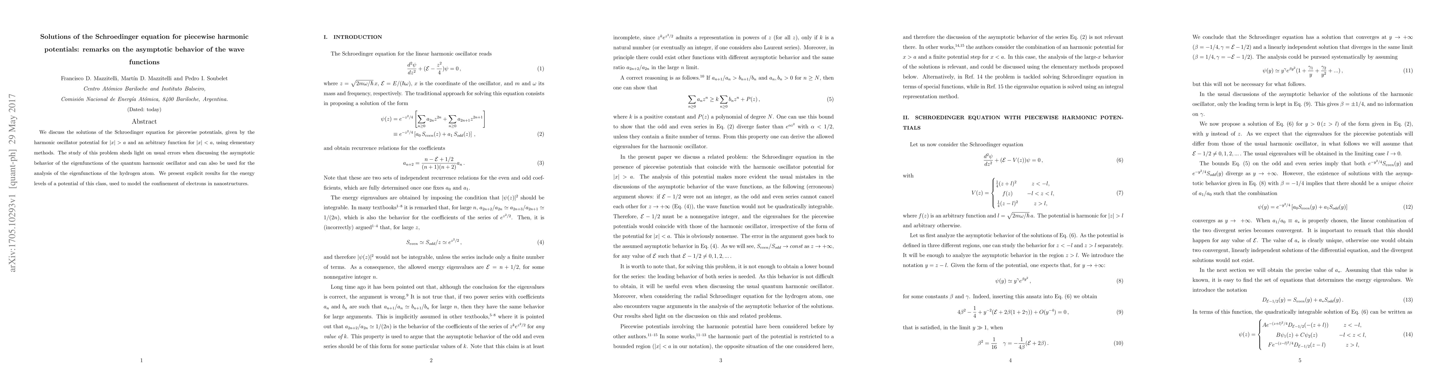 Researchers solved the Schroedinger equation for piecewise harmonic potentials, revealing explicit results for energy levels that can model electron confinement in nanostructures.