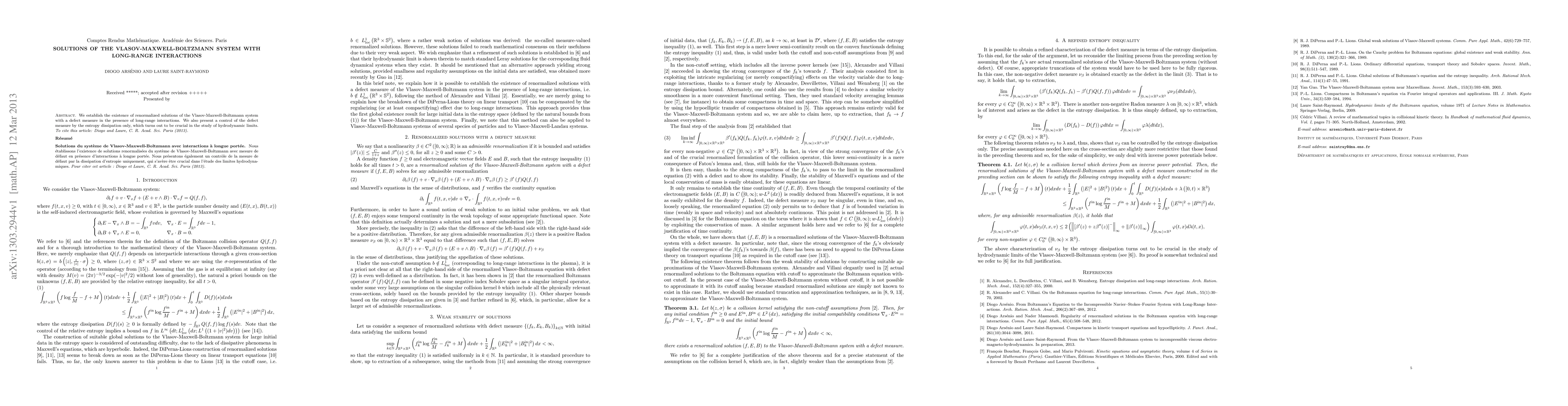 We establish the existence of renormalized solutions of the Vlasov-Maxwell-Boltzmann system with a defect measure in the presence of long-range interactions. We also present a control of the defect measure by the entropy dissipation only, which turns out to be crucial in the study of hydrodynamic limits.