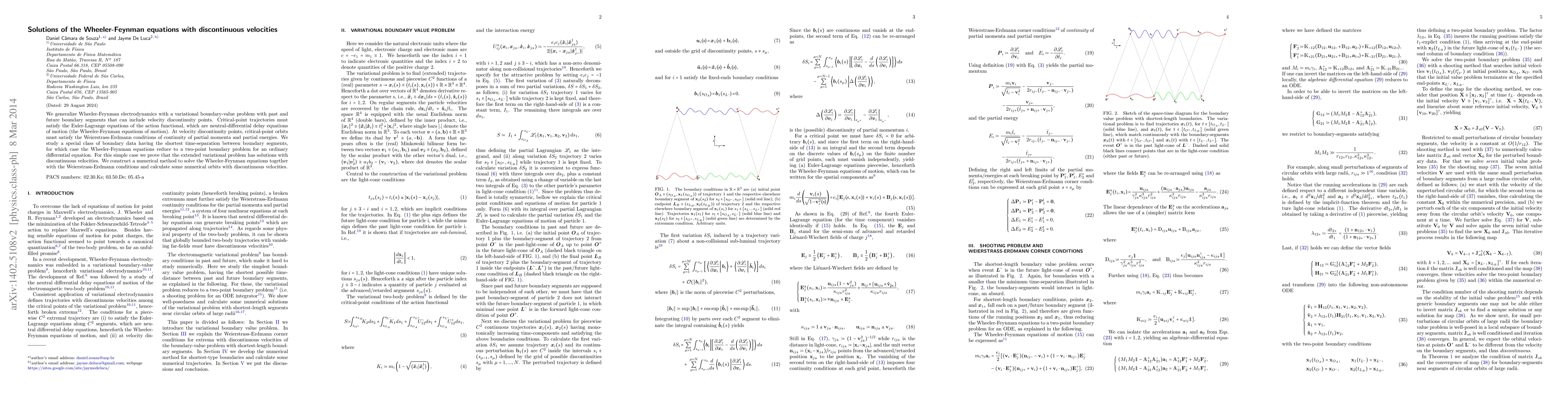 This paper generalizes Wheeler-Feynman electrodynamics to include velocity discontinuities, proving the existence of solutions to the equations under the Weierstrass-Erdmann conditions. A numerical method is developed to compute orbits with discontinuous velocities for a simplified boundary problem.