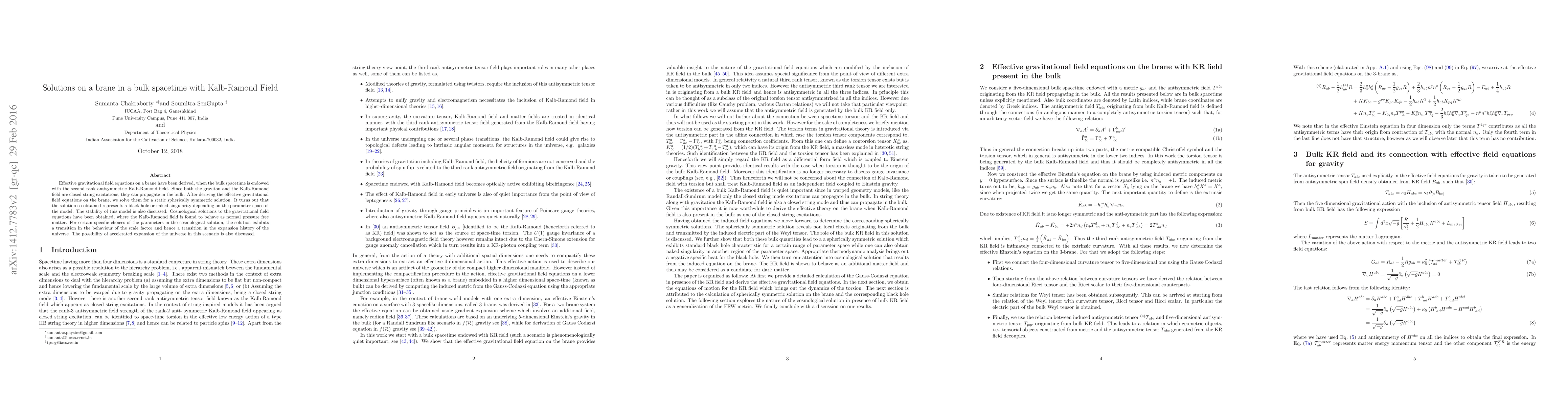 This paper derives effective gravitational field equations on a brane with a Kalb-Ramond field in the bulk, solving them for static spherically symmetric solutions that represent black holes or naked singularities. It also explores cosmological solutions where the Kalb-Ramond field acts like normal pressure-free matter, potentially leading to transitions in the universe's expansion history and accelerated expansion.