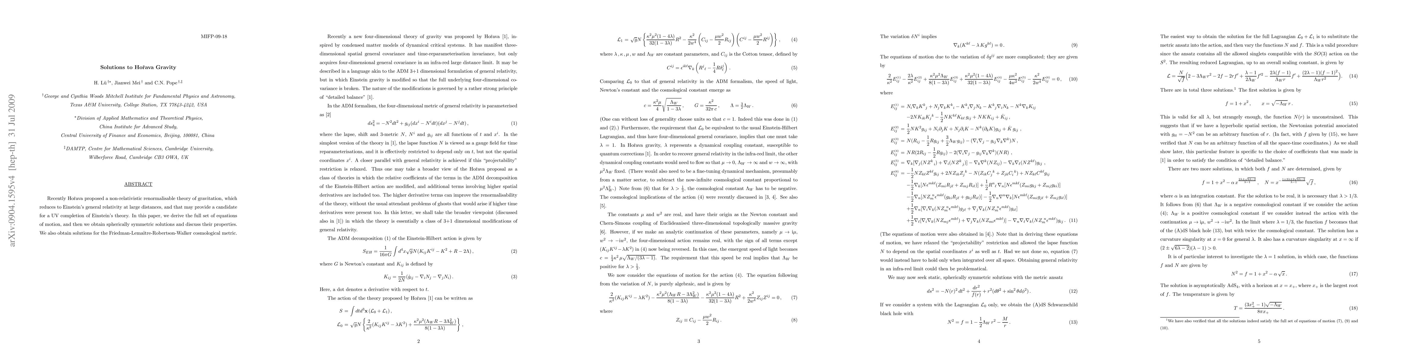 Recently Horava proposed a non-relativistic renormalisable theory of gravitation, which reduces to Einstein's general relativity at large distances, and that may provide a candidate for a UV completion of Einstein's theory. In this paper, we derive the full set of equations of motion, and then we obtain spherically symmetric solutions and discuss their properties. We also obtain solutions for the Friedman-Lemaitre-Robertson-Walker cosmological metric.